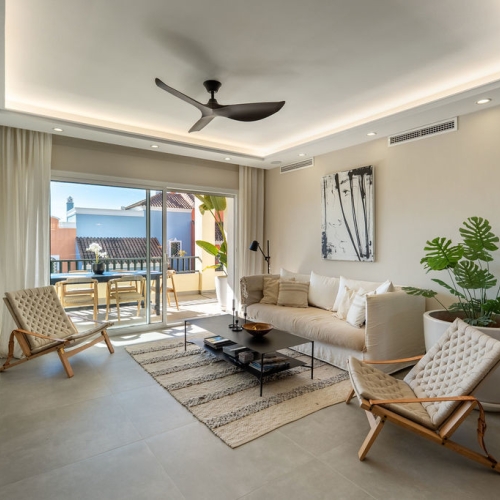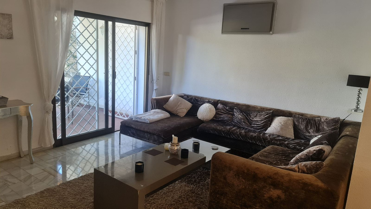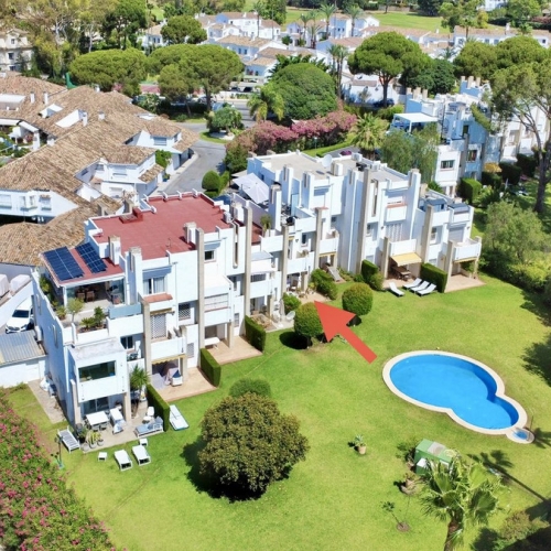 Surrounded by 12.000 m2 of gardens for only 12 properties and in front of las Brisas Golf. This lovely , 3 bedrooms duplex with 2 bahrooms and guess toilet .Offers you communal pool and gardens, to enjoy "the golf-valley way of life". Air cond all the rooms South and west orientated.Electric Windows Fireplace . .Parking inside of the gated complex. Cousy place to live very ,quiet and walking distance to las Brisas golf corse and los Naranjos Golf corse, close to Puerto Banus.