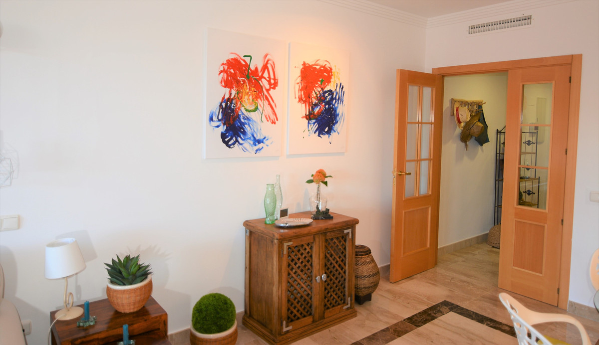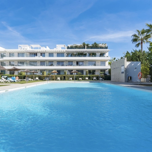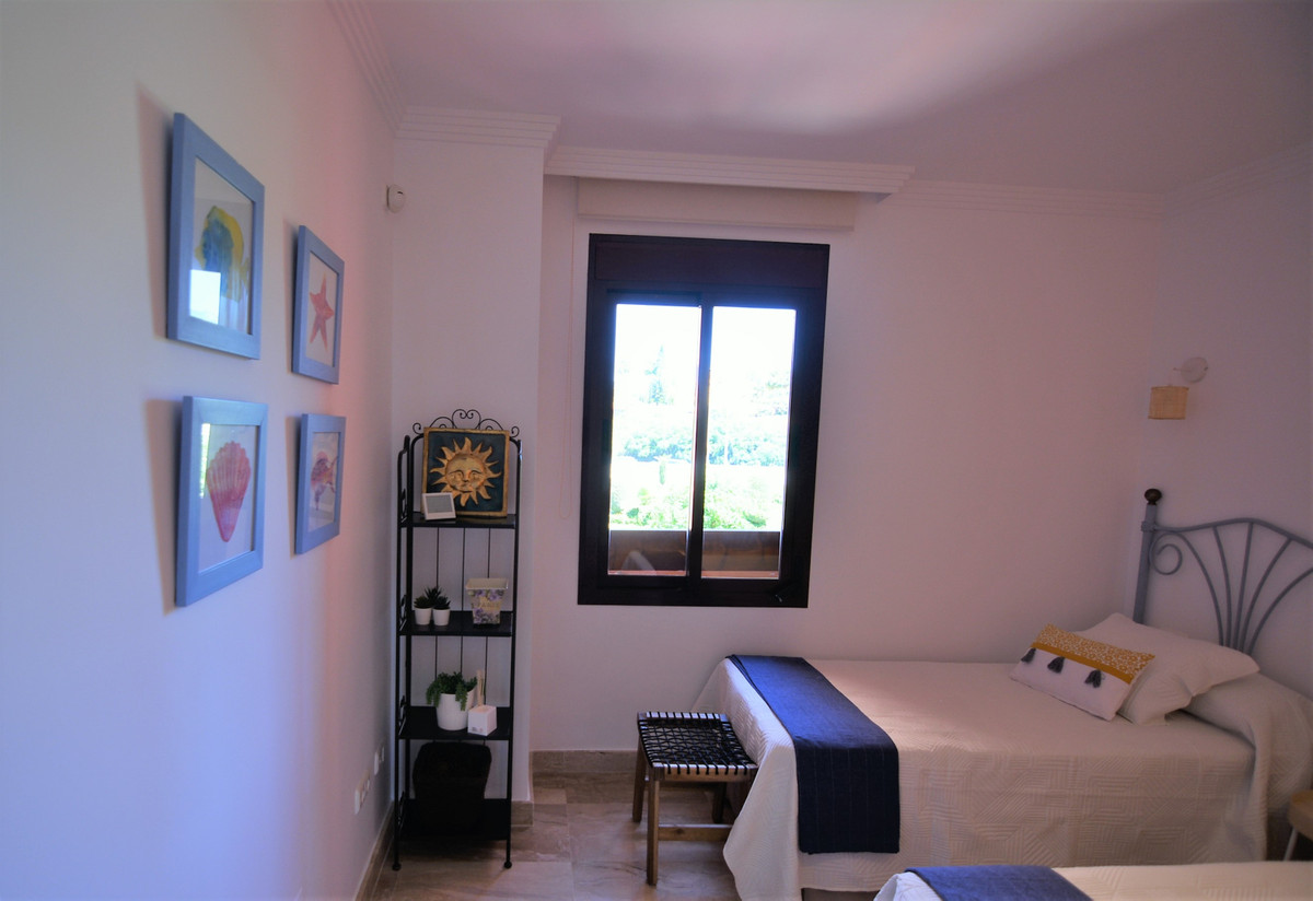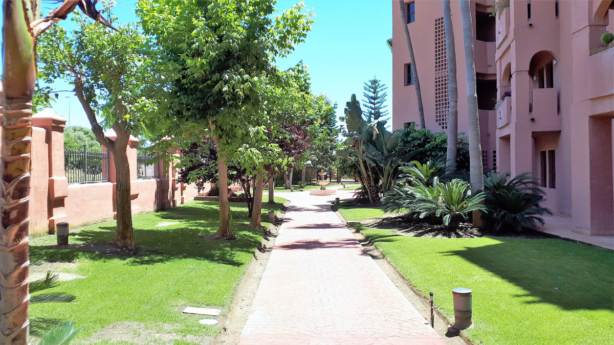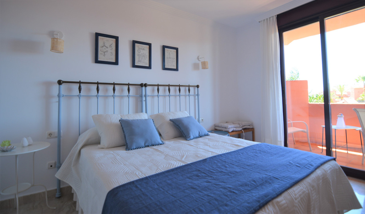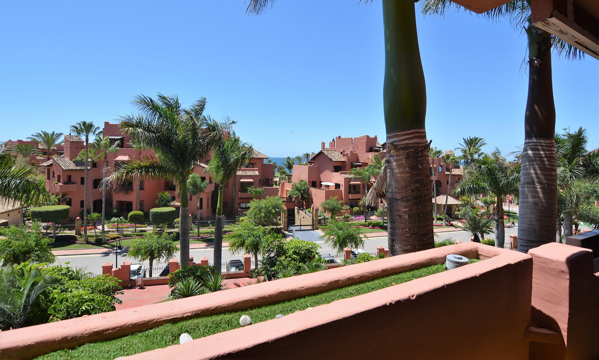 Beautiful luxury apartment in the beach urbanisation of Guadalmansa. This dwelling features top quality cream marble floors, a domotic system which includes alarm, AC, automatic control of water supply, fire detectors, video entrance phone and more. There are 2 bedrooms and 2 bathrooms one en-suite with big jacuzzi and power shower. The living room is big and features built in spotlights and automatic blinds. The kitchen is also spacious with a breakfast bar and space for a table and four chairs. All kitchen appliances are high quality from AEG. There is also an ample utility room with washer-dryer machine. The south facing terrace is 14m2 with sea views and facing the beautiful tropical garden that enjoys a big swimming pool and and artificial stream with waterfalls. The complex enjoys an indoor gym and the most beautiful spa including a heated pool, jacuzzi and sauna. The spa is decorated with wall to wall renaissance frescos. The beach is only 100 metres away and has is the coast´s only frontline beach park of 20 000 m2 with an artificial river, a historical moorish watch tower and the five star restaurant ´Tikitano´.
