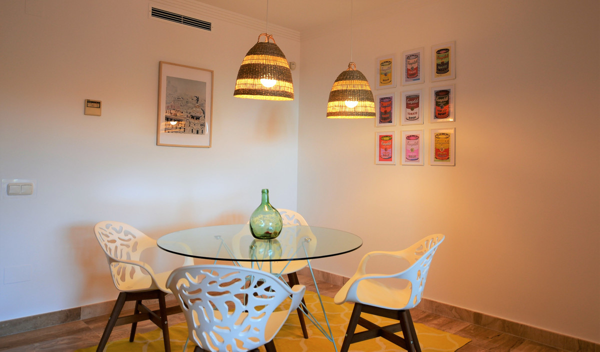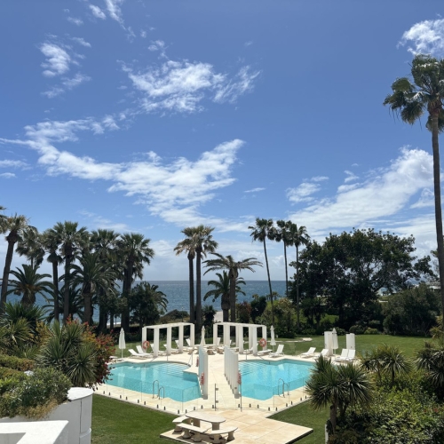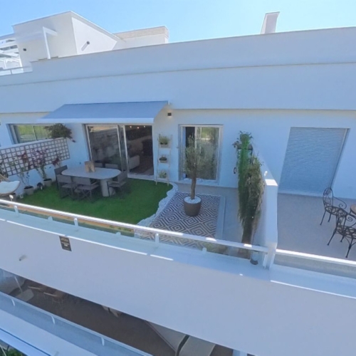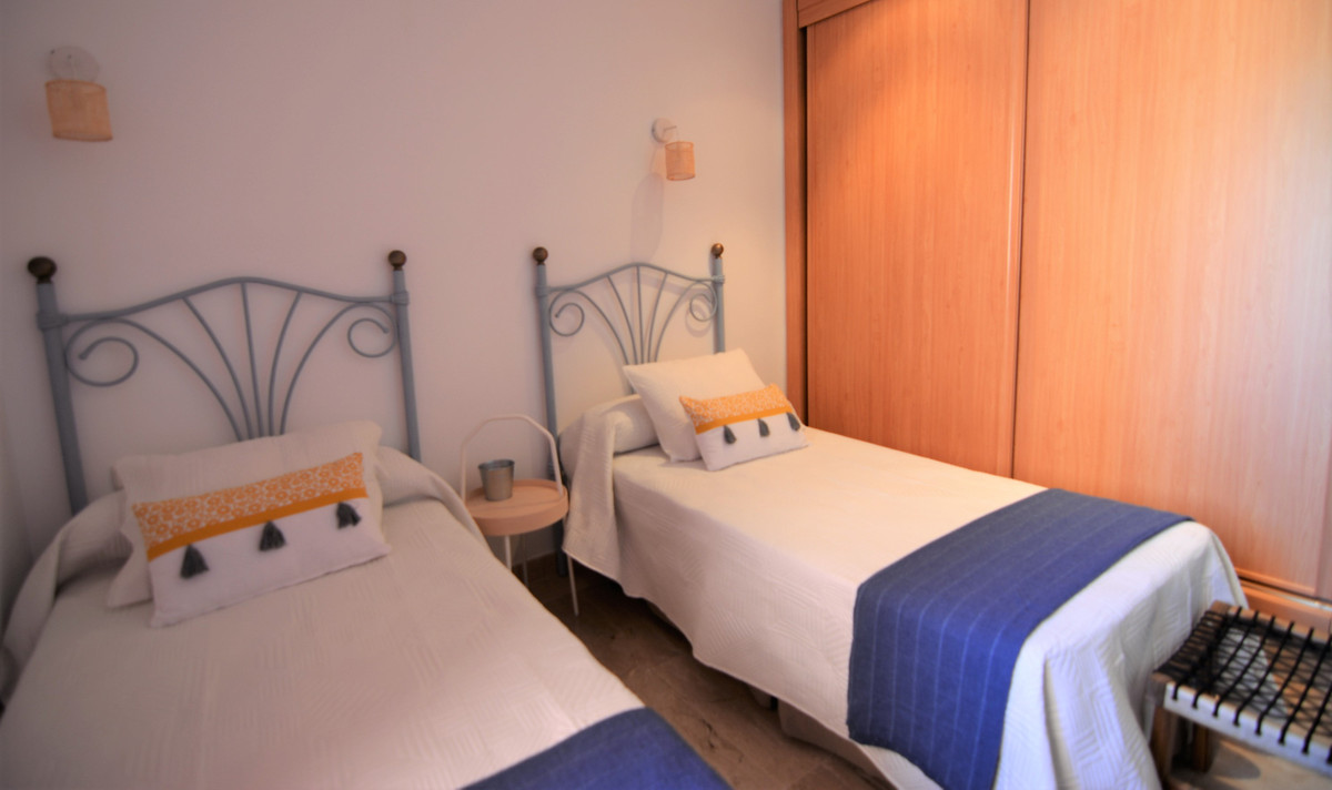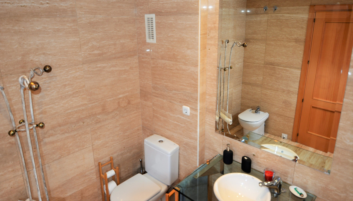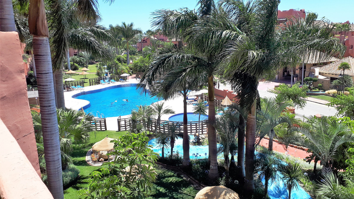 Beautiful luxury apartment in the beach urbanisation of Guadalmansa. This dwelling features top quality cream marble floors, a domotic system which includes alarm, AC, automatic control of water supply, fire detectors, video entrance phone and more. There are 2 bedrooms and 2 bathrooms one en-suite with big jacuzzi and power shower. The living room is big and features built in spotlights and automatic blinds. The kitchen is also spacious with a breakfast bar and space for a table and four chairs. All kitchen appliances are high quality from AEG. There is also an ample utility room with washer-dryer machine. The south facing terrace is 14m2 with sea views and facing the beautiful tropical garden that enjoys a big swimming pool and and artificial stream with waterfalls. The complex enjoys an indoor gym and the most beautiful spa including a heated pool, jacuzzi and sauna. The spa is decorated with wall to wall renaissance frescos. The beach is only 100 metres away and has is the coast´s only frontline beach park of 20 000 m2 with an artificial river, a historical moorish watch tower and the five star restaurant ´Tikitano´.