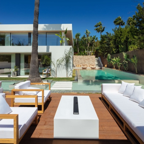 Introducing an exceptional modern villa located on one of the most exclusive plots in La Cerquilla, and benefiting from some of the valley's best views. Luxuriously designed and equipped, the villa benefits from 5 en suite bedrooms and one spectacular master suite. All bedrooms have wonderful sea-facing terraces, and all bathrooms feature Porcelanosa design. This modern Villa is built to very exacting standards and features a lift to all floors, stunning double height entrance hall, huge entertaining areas, unique water features and unrivalled views of the surrounding valley and out to sea.