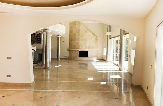 New Bank repossession. A detached 5 bedroom villa with a total built area of 1,383m² situated on a plot of 4017m² and located in Los Almendros, within the municipality of Benahavís, in a quiet area, just 16 km from Marbella and 75 from Malaga. The property is distributed in four levels, defined as a basement, where we find a bar area, a dressing room, a games room, a bathroom with a bathtub and shower and stairs that give access to the semi-basement, consisting of a large garage with space for several vehicles, a second games room, hallway to the 2 bedrooms with en-suite bathrooms and built-in wardrobes, one of them with access to a covered porch with an area of about 60 m2. The ground floor has a semi-furnished independent kitchen with a central island, living room with marble floors, dining room, a walkway leading to the distributor, 2 bedrooms with en-suite bathrooms and built-in wardrobes, as well as two spacious open terraces; and finally, on the upper floor, which is accessed from the street through the entrance porch, where there is the entrance hall, a corridor, a bedroom with dressing room, bathroom and a balcony.