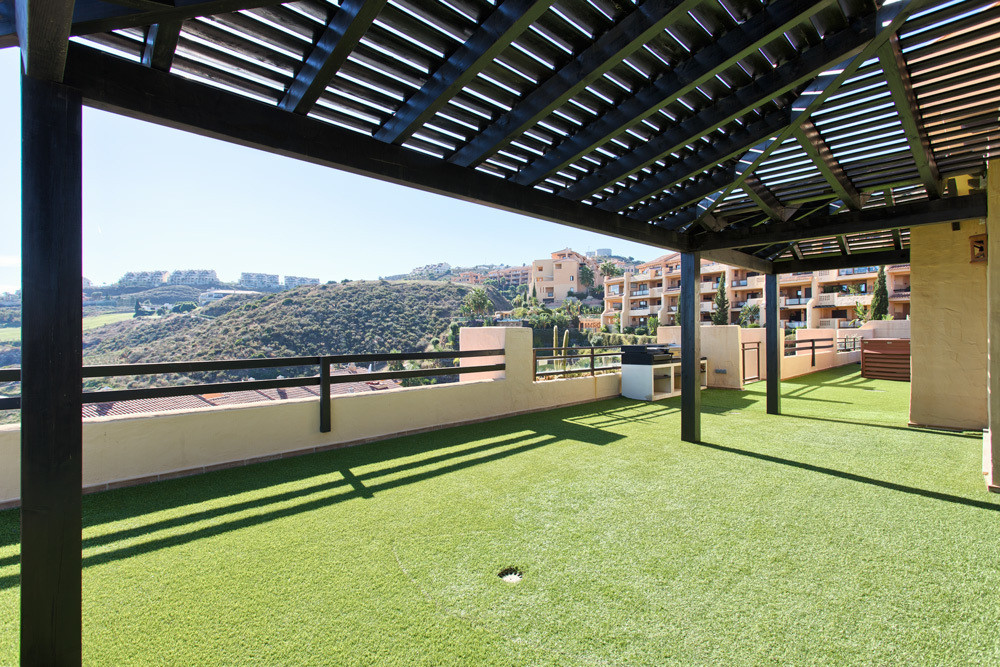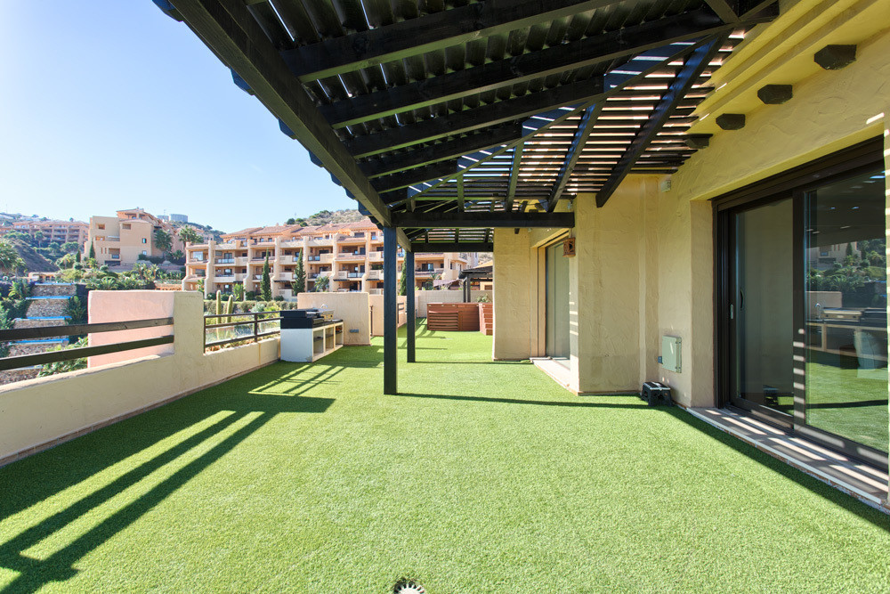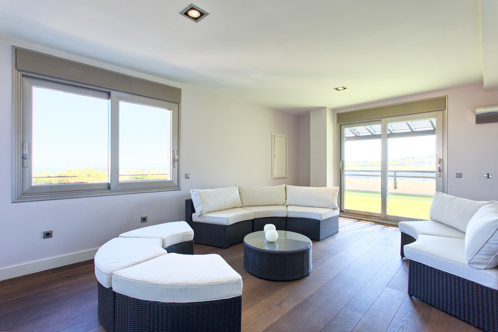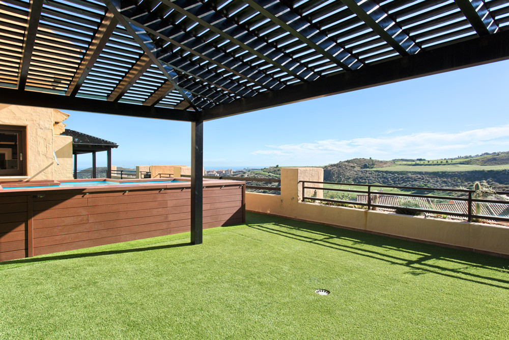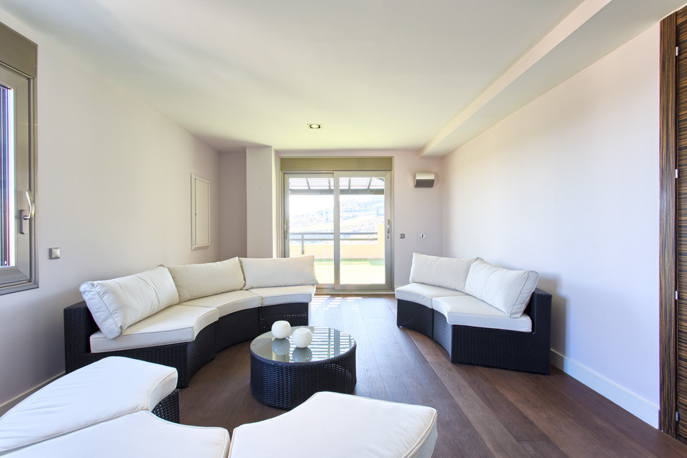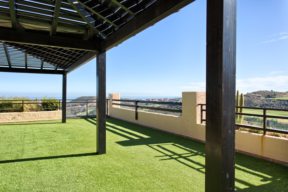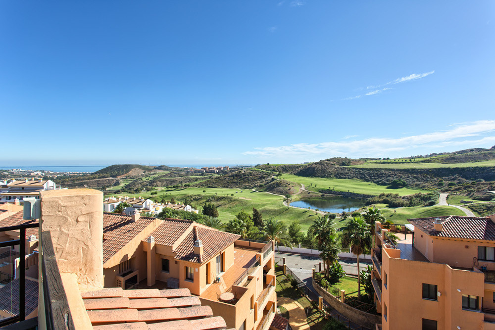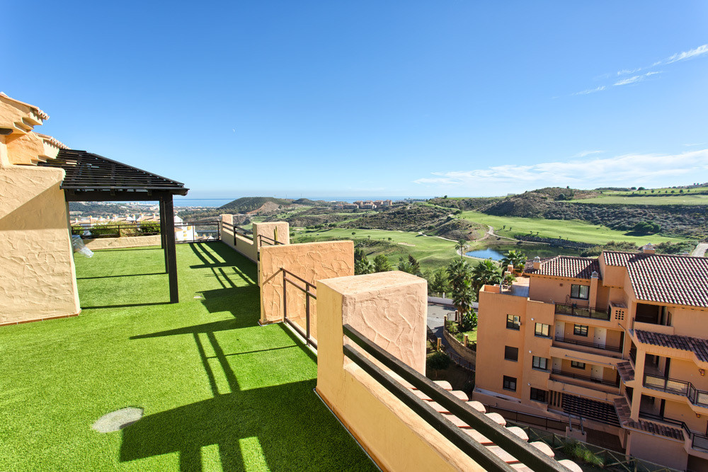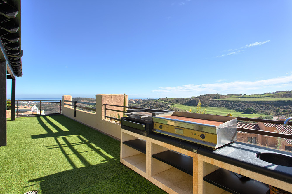 Double glazed windows and electric blinds, wood oak flooring throughout and air conditioning hot and cold are standard features of this duplex penthouse apartment. The terrace has a warm feeling for outside living with breathtaking panoramic views of the sea, mountain and golf.