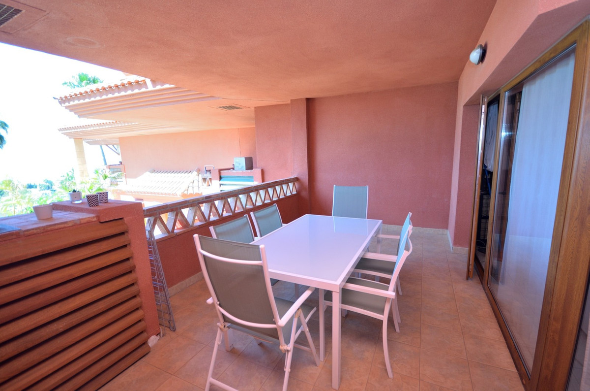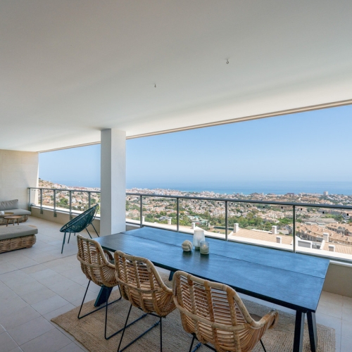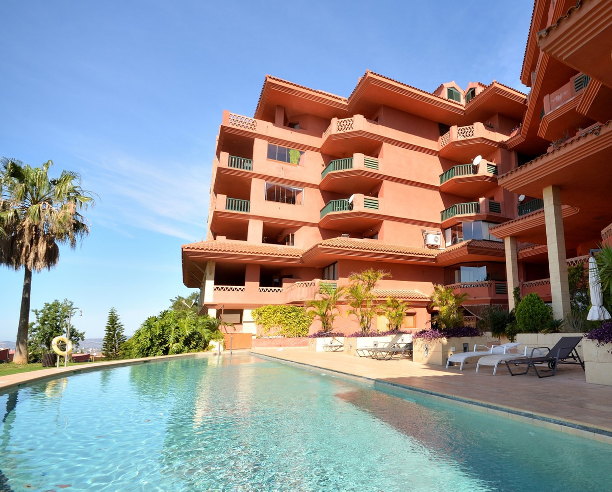 Magnificient apartment in exclusive complex Altos del Higueron located in higher Benalmadena. This 3 bedroom 2 bathroom apartment is found inside very well maintained gated community with south orientation. As you enter the apartment throughh the hall is the spacious living room with dining area. At the end of the living area is the terrace of 20 sqm, south facing allowing sunlight thoughout the apartment, with panoramic views of the coastline, also views of community´s gardens and pool.