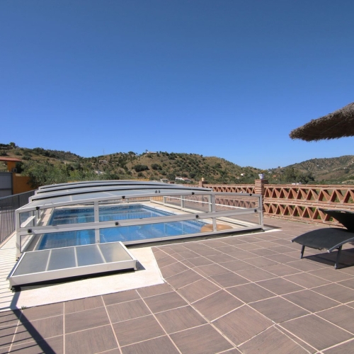 Opportunity at Bargain price! Lovely country house set between the picturesque Andalusian villages of Monda and Guaro, just a few kilometres away from Marbella, with stunning views over the countryside and the beautiful mountains of the Sierra de Las Nieves. A gated entrance drive leads up to the main house, the guest apartment and to a large patio with tropical roof, summer kitchen with bar and barbecue. The property comprises on the ground floor an entrance hall, a master suite, a spacious kitchen opening onto a spacious living/dining room with fireplace with direct access to the large terrace and the pool area. Downstairs, there are 4 more spacious bedrooms, a bathroom and with a spacious lounge with fireplace.