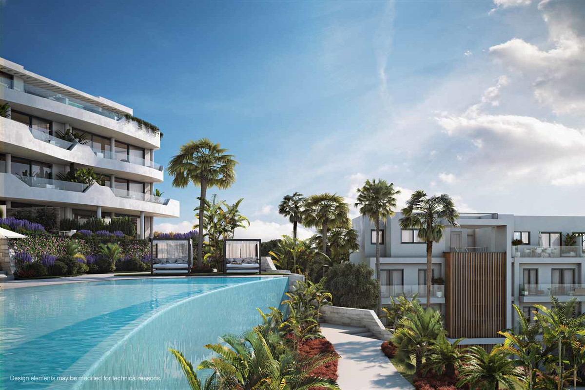 This development is a master-planned community with a first-class infrastructure and set of support services designed to offer a superior quality of life. The apartments, garden and sky villas in the units are laid out in small, intimate blocks of 5-7 properties each and surrounded by gardens carefully landscaped to create a sense of peace and beauty around the homes. The development is in phases, and since this is the only master-plan development of its kind on the Costa del Sol, the infrastructural planning is excellent and the architectural styling complementary and harmonious.