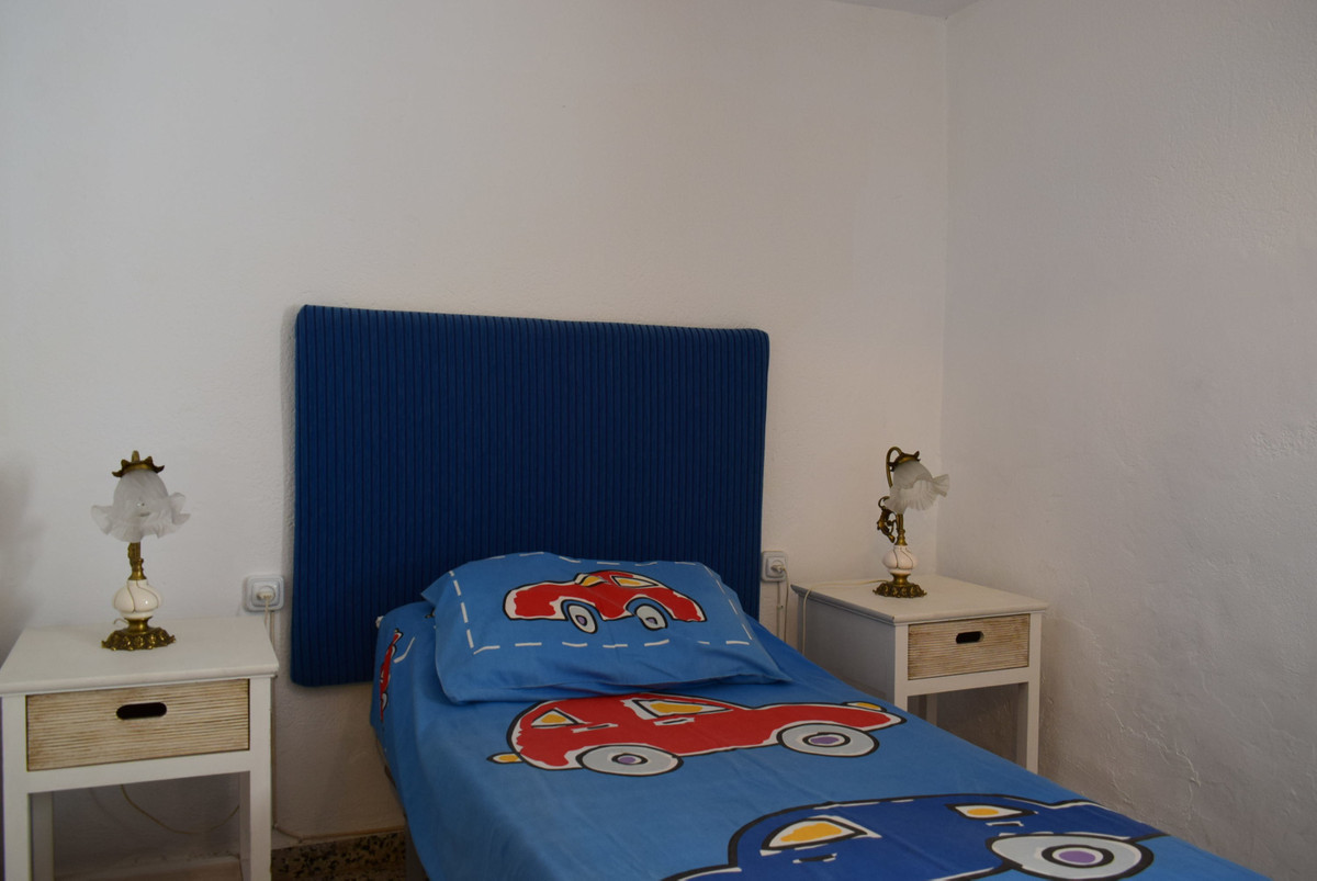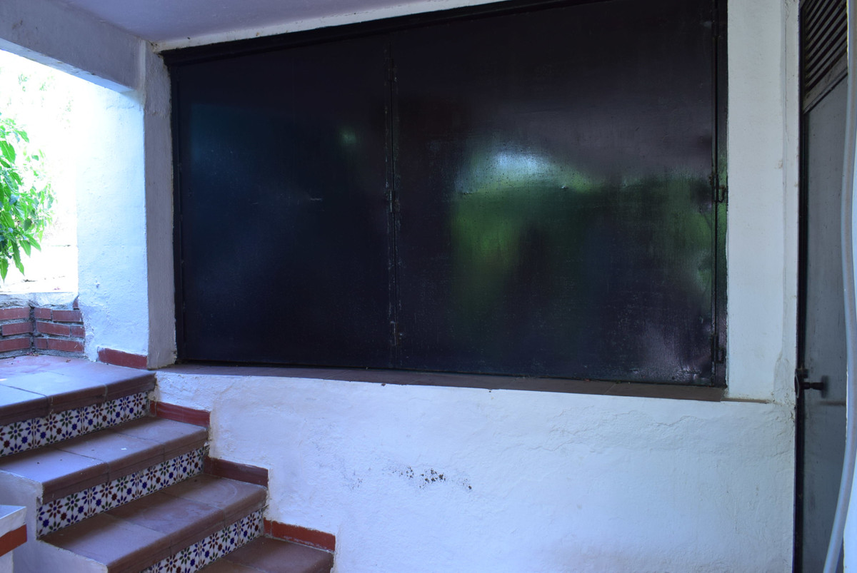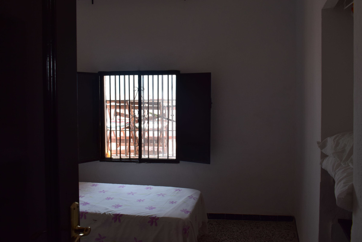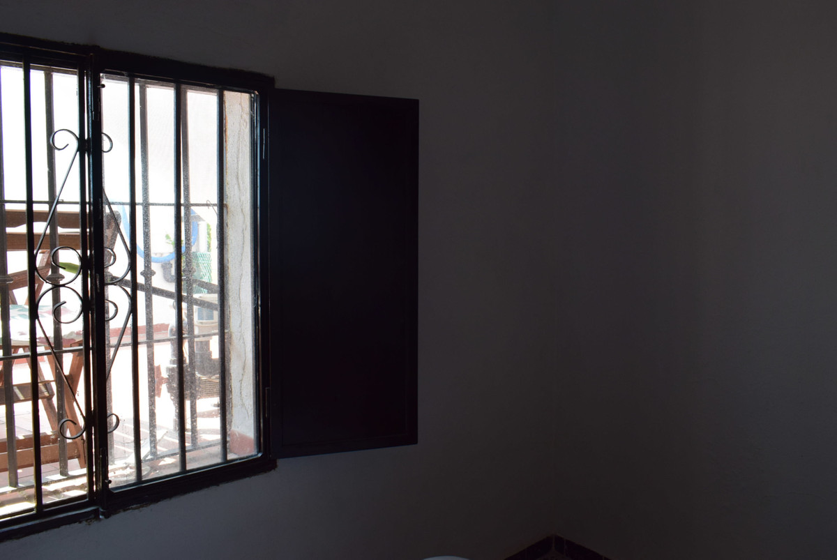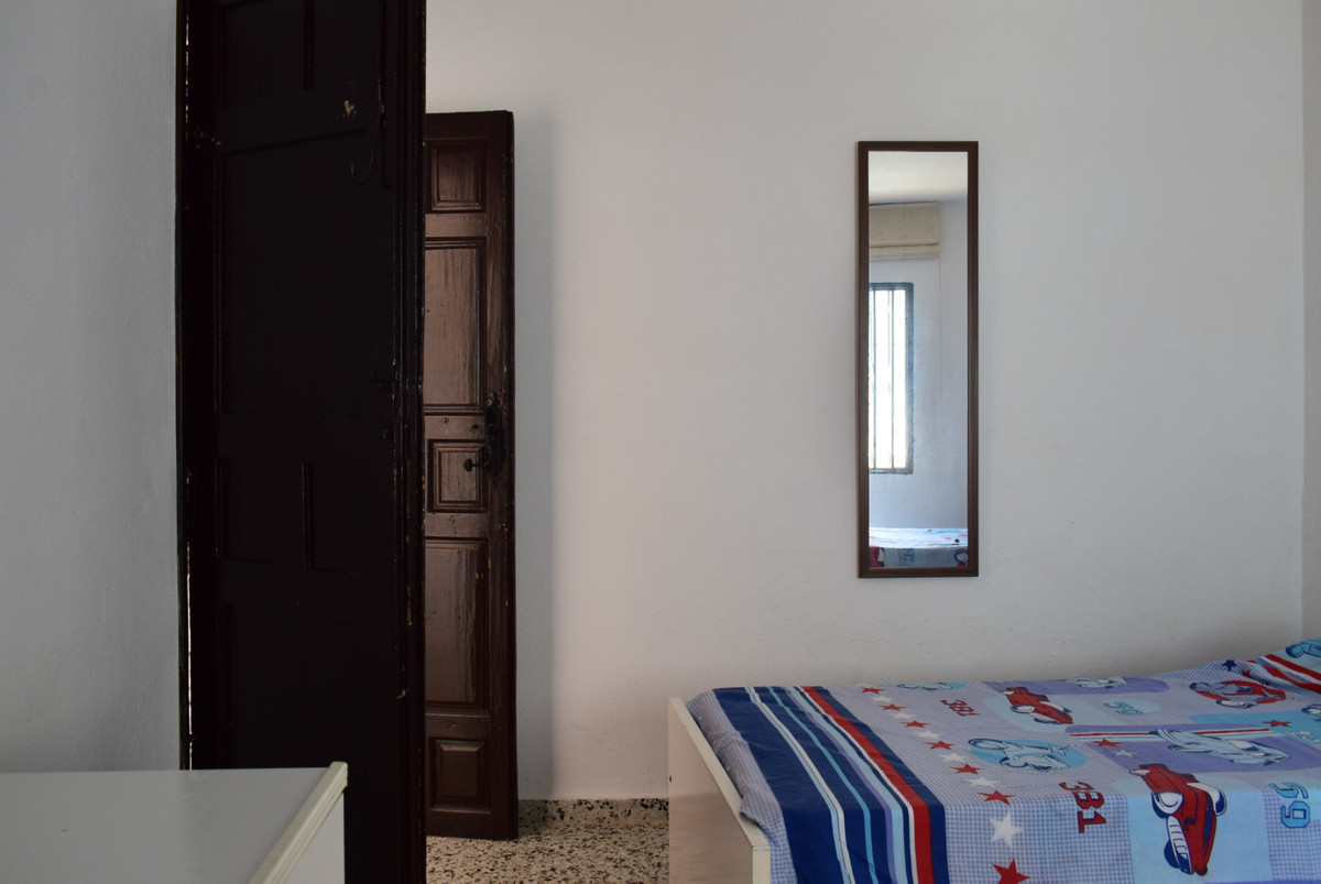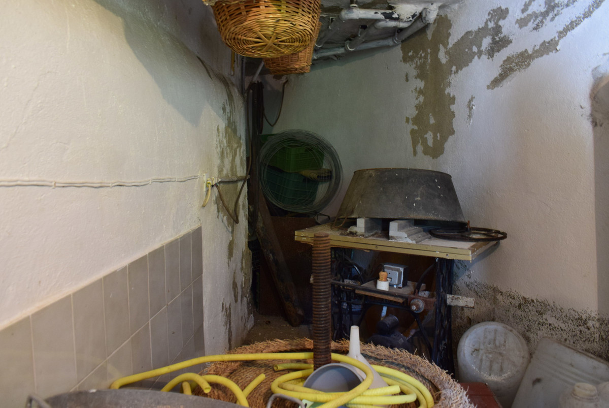 From the kitchen you enter in another corridor at the back, where you find another spacious bedroom, also with the original doors. The corridor gives access to the swimming pool in a private corner of the property.