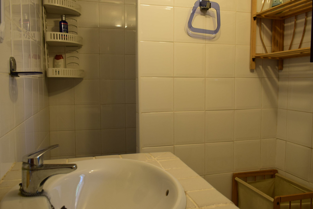 There is staircase that leads to a bedroom and bathroom downstairs. From the corridor you reach the terrace of the basement.