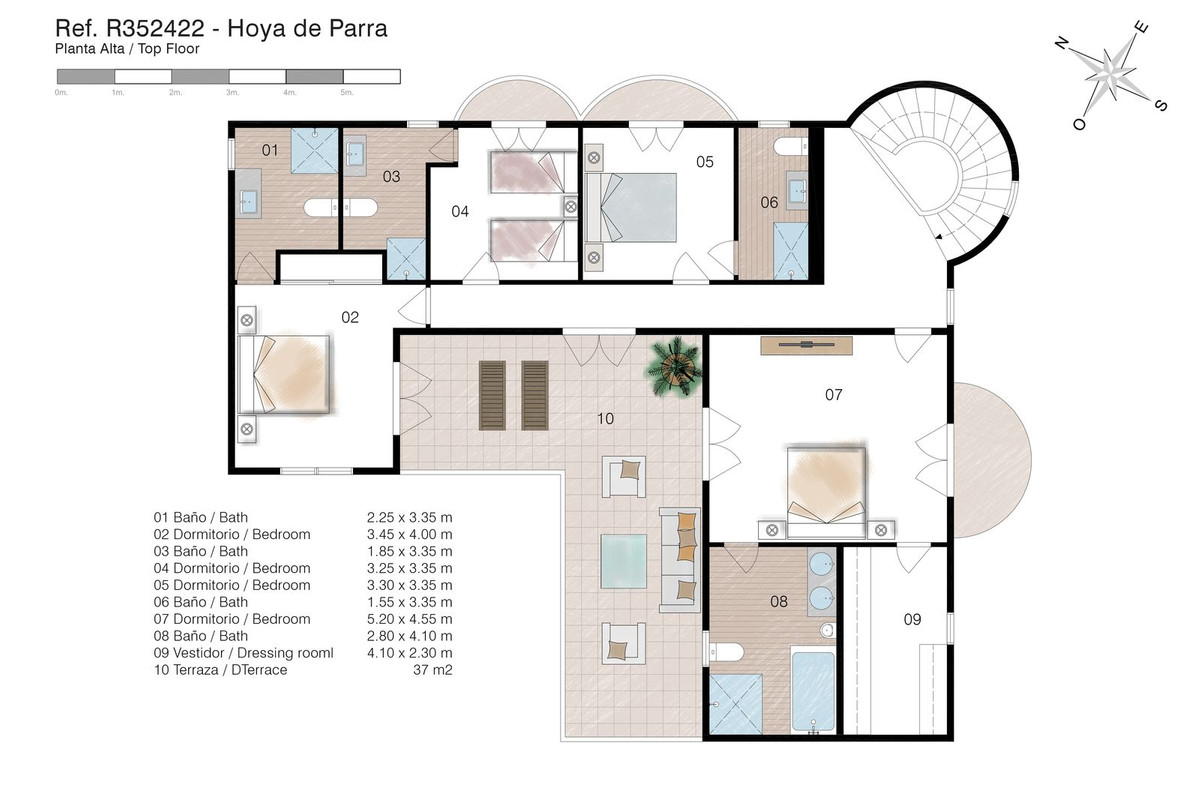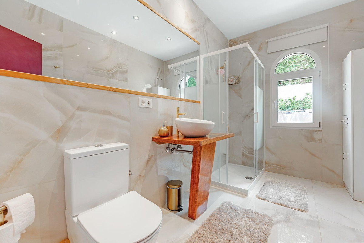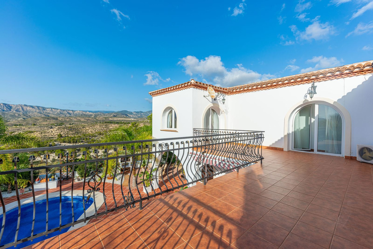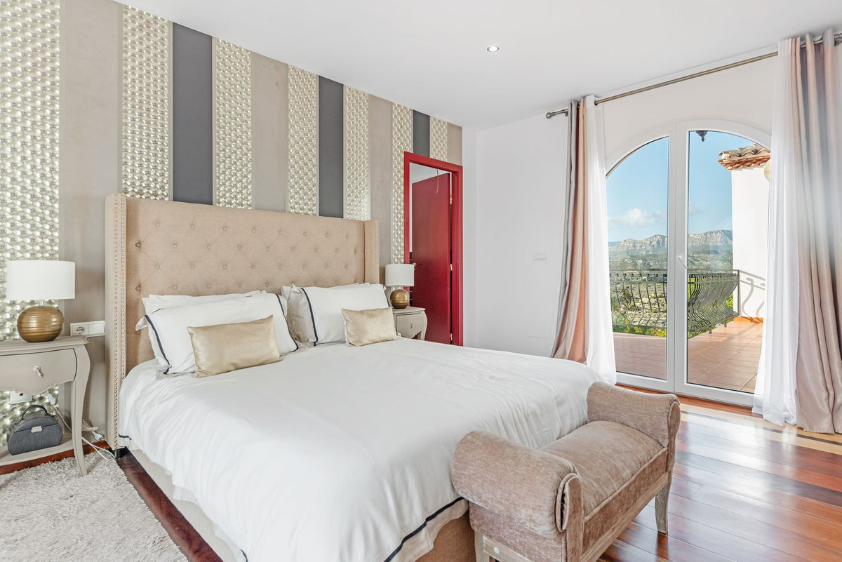 Upper floor: 4 double suites with en-suite shower rooms on this level. The master bedroom also offers a dressing area and large bathroom with his and hers was basins, shower and bathtub. The 2 larger bedrooms enjoy direct access to a large terrace affording breathtaking views of the mountain range, the swimming pool and gardens. Bedrooms 3 and 4 benefit from their own private balconies.