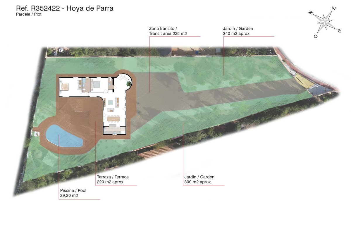 Exteriors: 220m2 swimming pool terrace, very private with open long distance views to the rear. Free-form swimming pool and covered terrace areas and day bed and BBQ. Manicured, landscaped gardens with mature trees terraced, laid to gravel and impressive driveway and impressive exterior lighting.