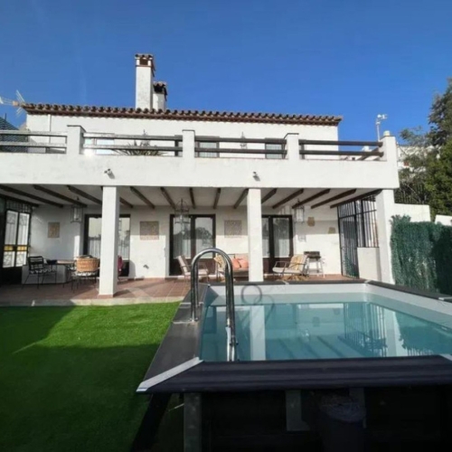 This lovely Villa is just outside the historic town of Jimena de la Frontera, set in a green and lush plot of 4,000 square meters. The first floor consists of a living room, a dining room, a bedroom, bathroom, and a kitchen that leads to an outside terrace with an additional outdoor kitchen. From this terrace you can walk a few steps into a quiet little garden, surrounded by bushes and fruit trees.