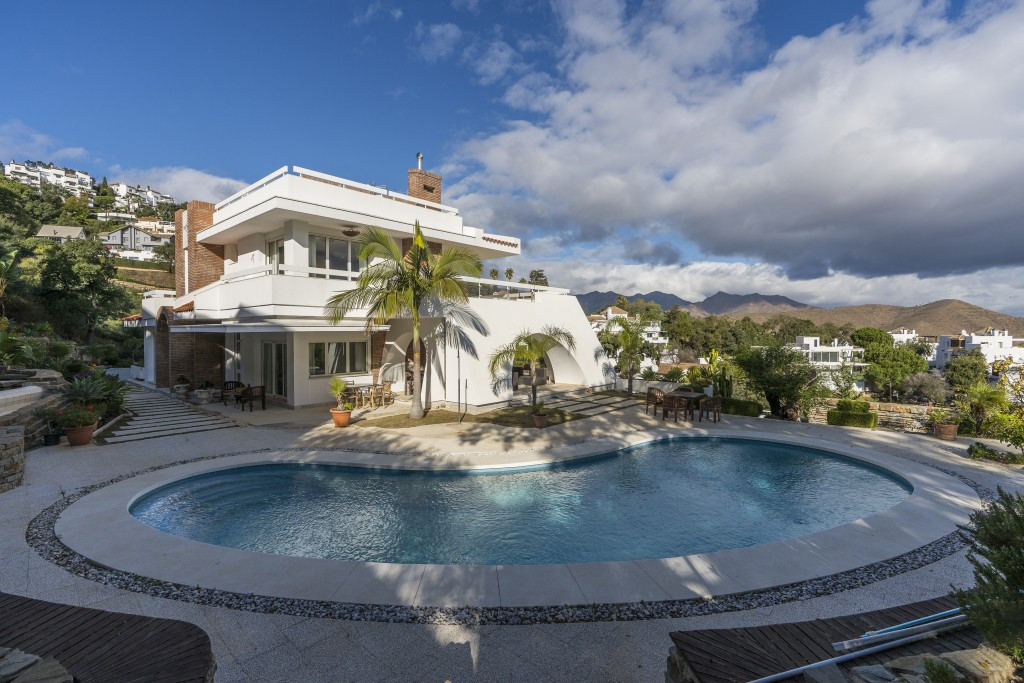 Amazing new built villa in La Mairena with high quality finishing and beautiful pool area. The villa offers on three levels, five bedrooms with en-suite bathrooms, a lovely and bright living room with open fire place, modern open plan kitchen and dining area. Several terraces and lots of storage space. Garage. Only the best materials were used, marble floors, solar panels, underfloor heating in all rooms, AC hot and cold.