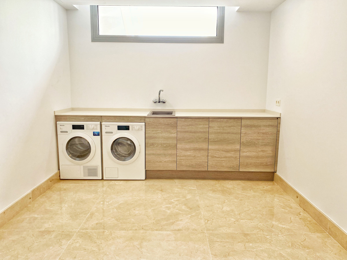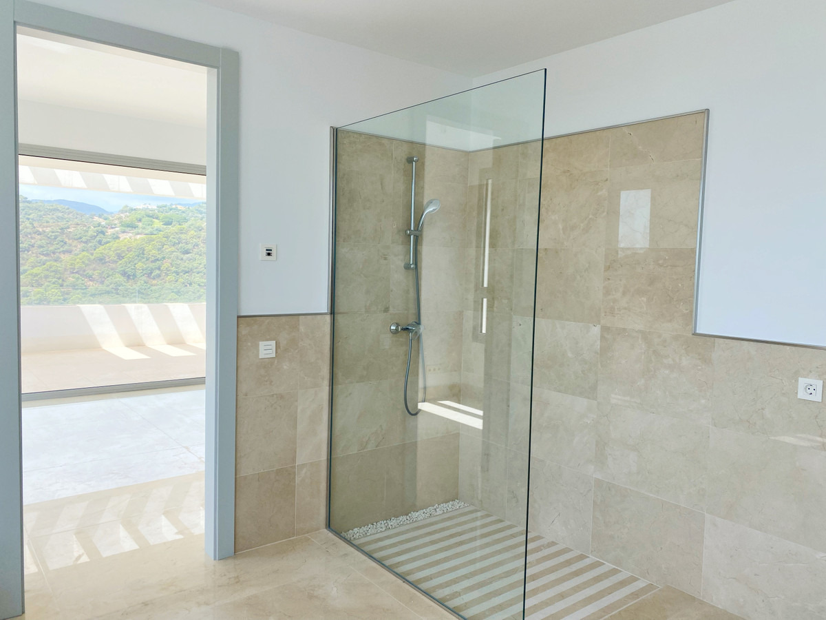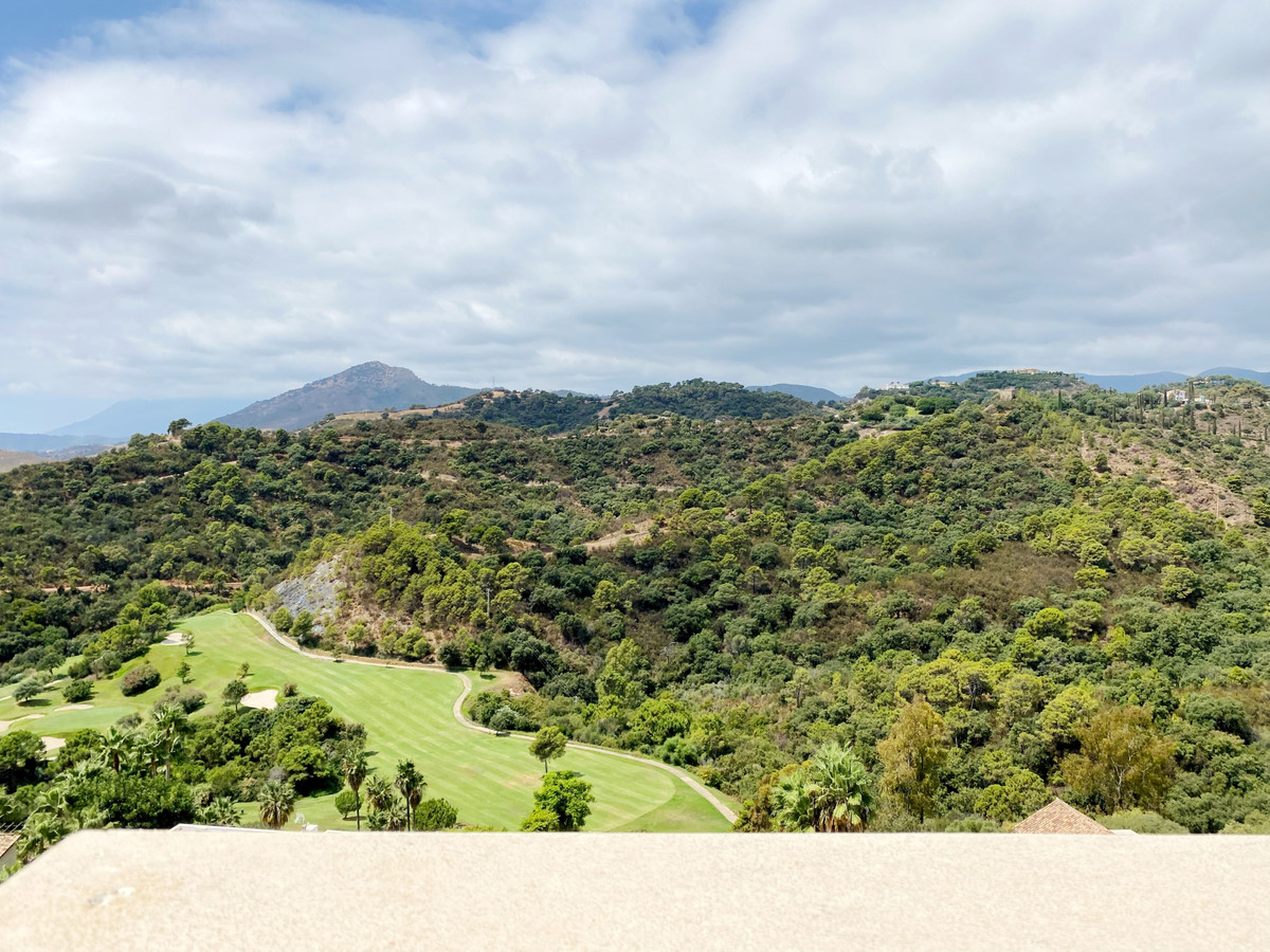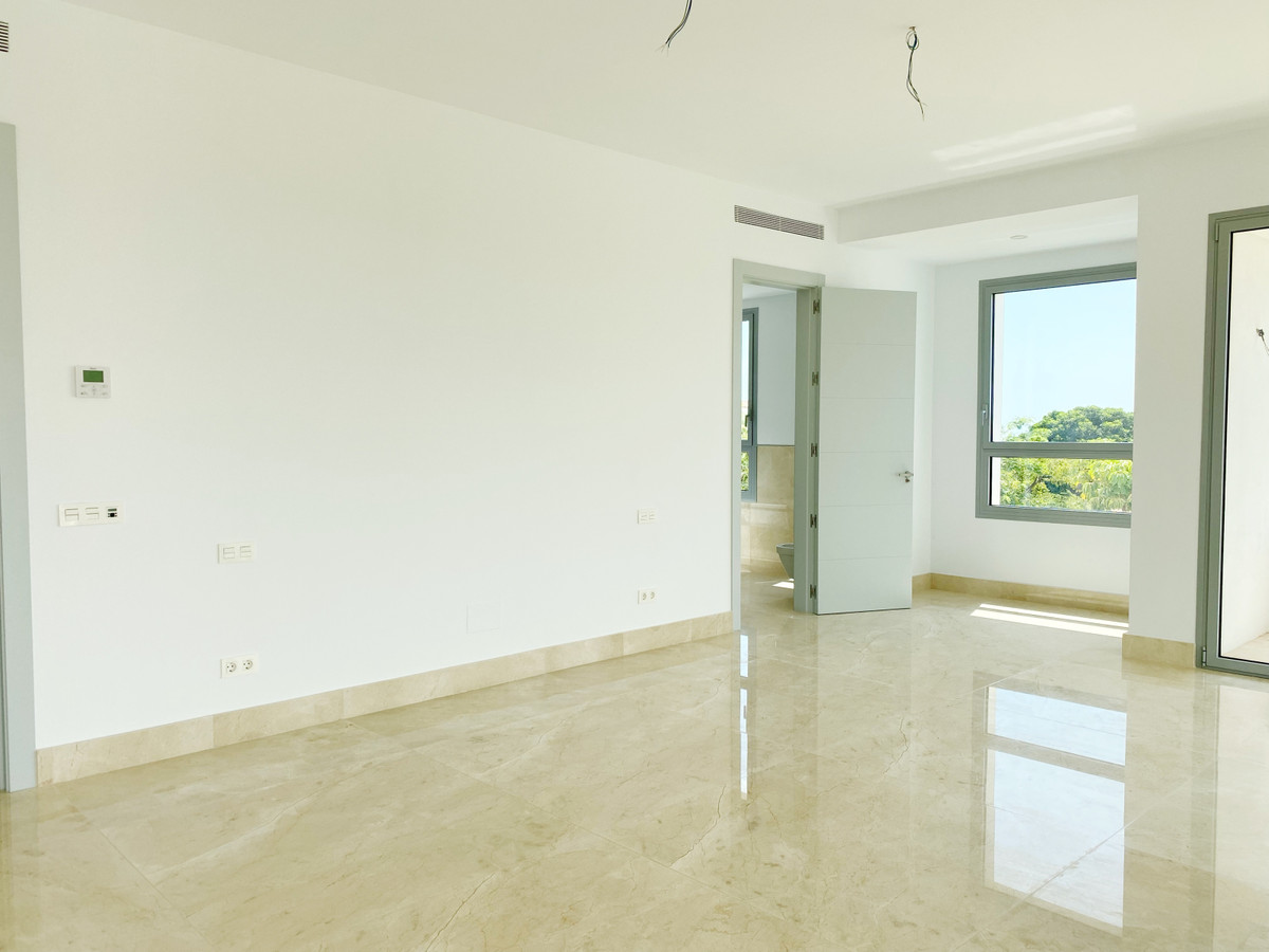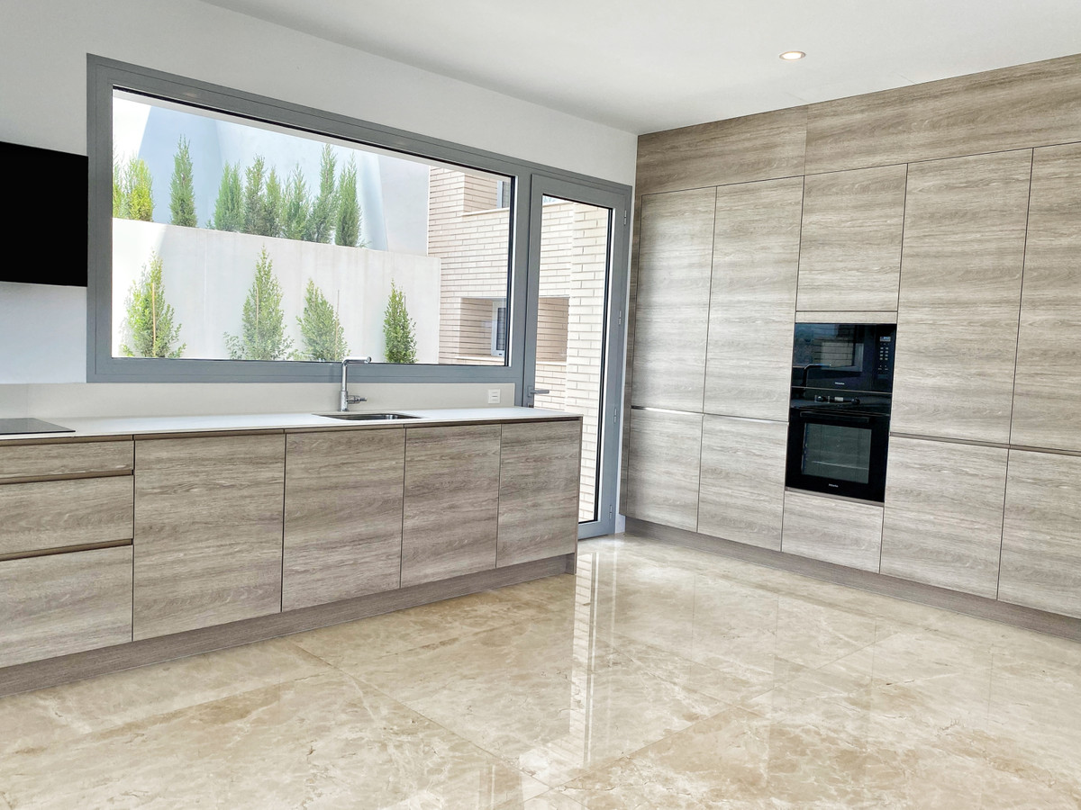 Newly built contemporary villa, finished on two floors plus basement, plus roof top, accessible by stairs and elevator. It is located in a natural environment, surrounded by golf and mountain, providing nice open views to those, panoramic sea view from the solarium and good sea view from some areas of the house. It is prepared to install amenities such as gym, spa area, cinema room and a wine room. It is a very spacious property, built with top quality materials, such as natural stone and Travertino marble floors. A very nice area with 24h security and a club house that offers an 18 holes golf course designed by Severiano Ballesteros, a tennis club, a bowling alley, restaurants, shops and a gym.