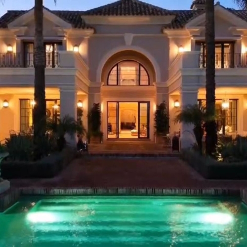 This Andalusian-style home consists of a main house, a pool house and a private padel tennis court.