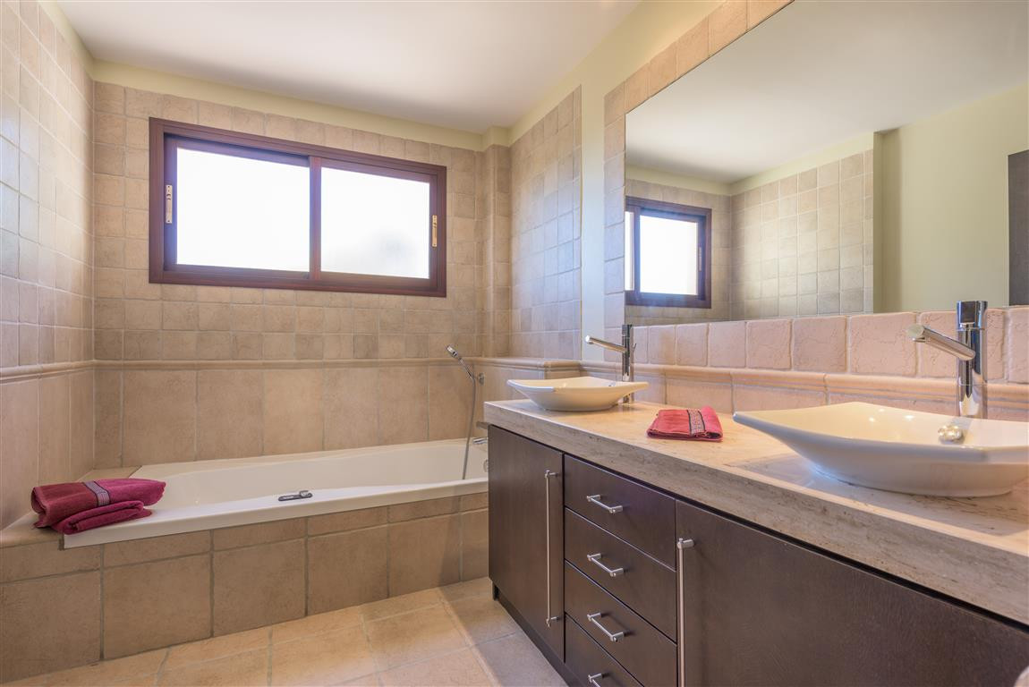 Villa for sale in , Benahavis with 5 bedrooms, 5 bathrooms, 5 en suite bathrooms, 1 toilet and with orientation south/east, with private swimming pool, private garage and private garden. Regarding property dimensions, it has 470 m² built, 1,000 m² plot, 414 m² interior and 56 m² terrace. Has the following facilities amenities near, air conditioning, central heating, fully fitted kitchen, utility room, fireplace, jacuzzi, satellite tv, basement, solar panels, guest room, storage room, gym, alarm, solarium, security entrance, double glazing, dining room, barbecue, security service 24h, guest toilet, private terrace, kitchen equipped, living room, study room, sea view, mountain view, golf view, automatic irrigation system, laundry room, covered terrace, electric blinds, fitted wardrobes, garden view, pool view, panoramic view, unfurnished, close to sea / beach, close to golf, uncovered terrace, games room, glass doors, balcony, excellent condition, close to shops, close to town and close to schools.