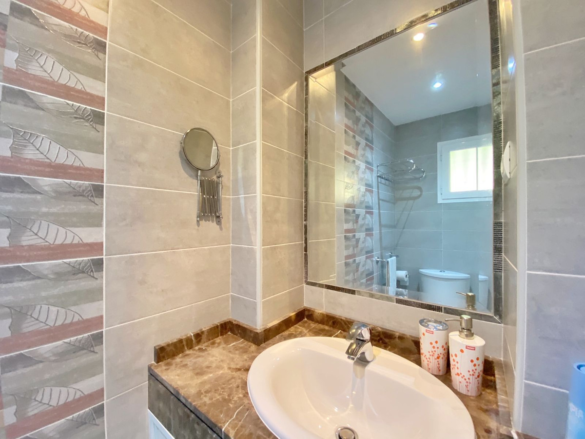 It comprises of a spacious living/dining room with fireplace and direct access to a lovely Southwest facing terrace. The ground floor also has a fully equipped kitchen and a guest toilet. On the upper floor there are 3 bedrooms and 2 bathrooms, one en-suite with access to a private terrace and a staircase that takes you up to the solarium.