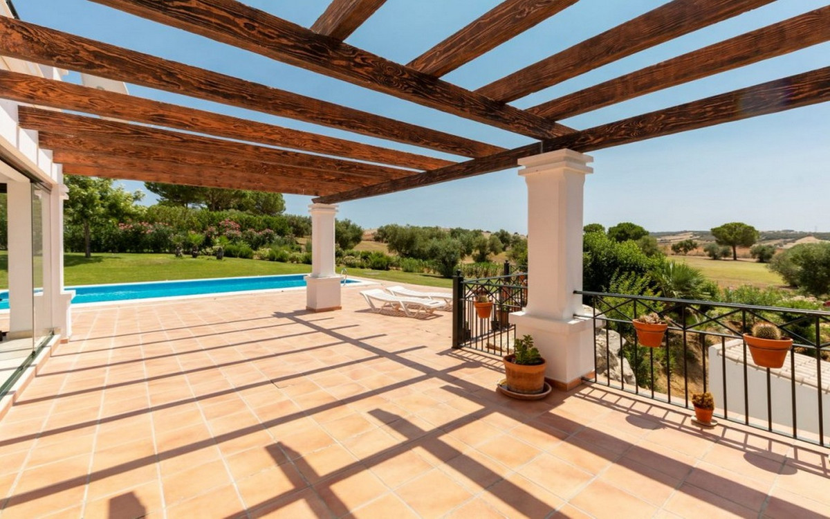 This beautiful south facing villa is opposite the 17th hole of Arcos Golf, the Exclusive and spectacular golf course surrounded by a wide variety of wildlife and plants, with views over the countryside, surrounding lakes and the town of Arcos de la Frontera on a cliff, in the province of Cádiz.