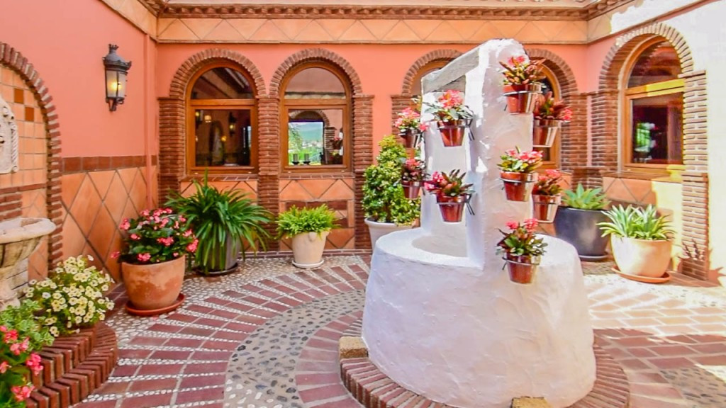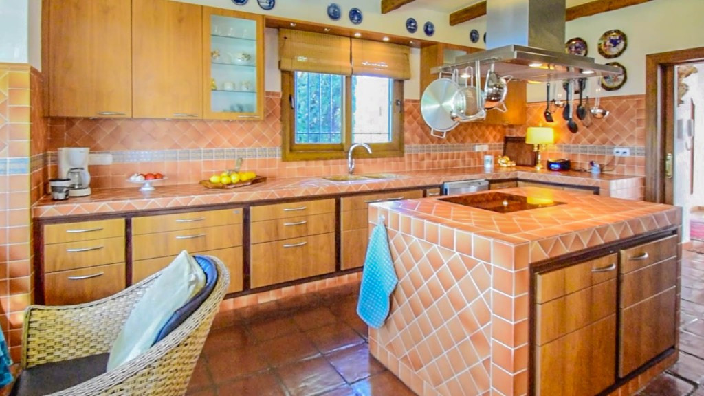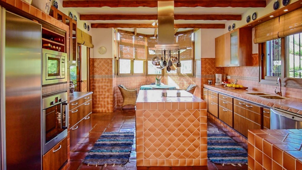 Entrance hall, guest toilet, separate fully equipped kitchen, dining room with fireplace, Andalusian patio, 3 bedrooms with on suite bathrooms.