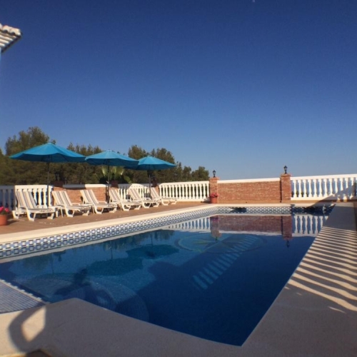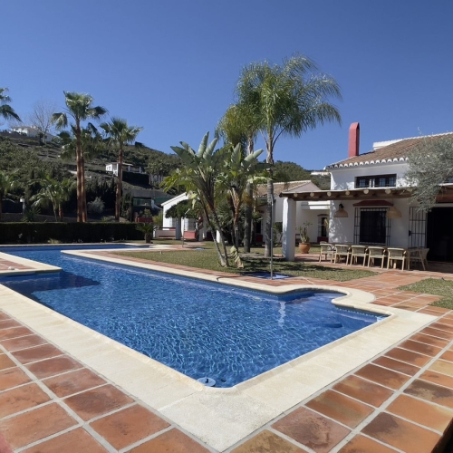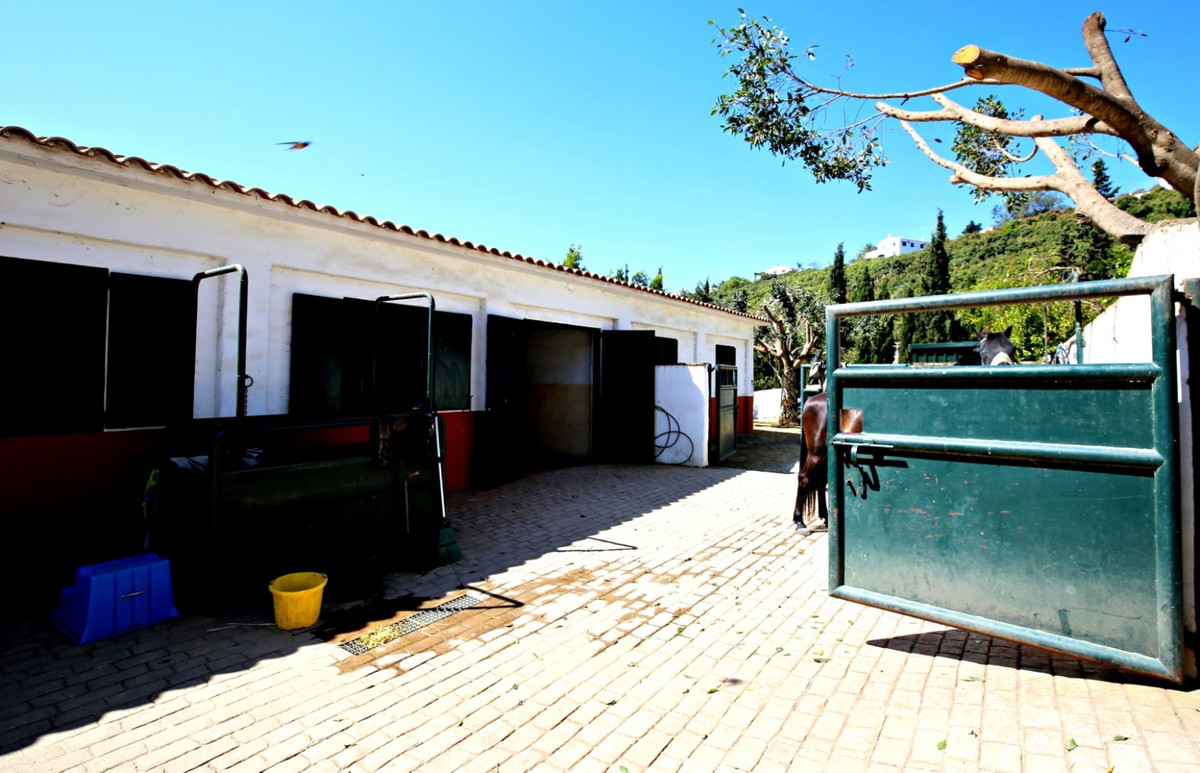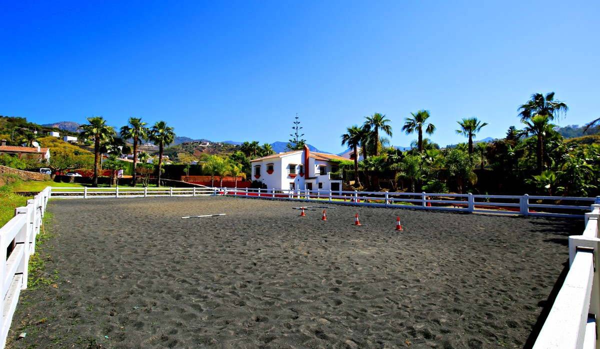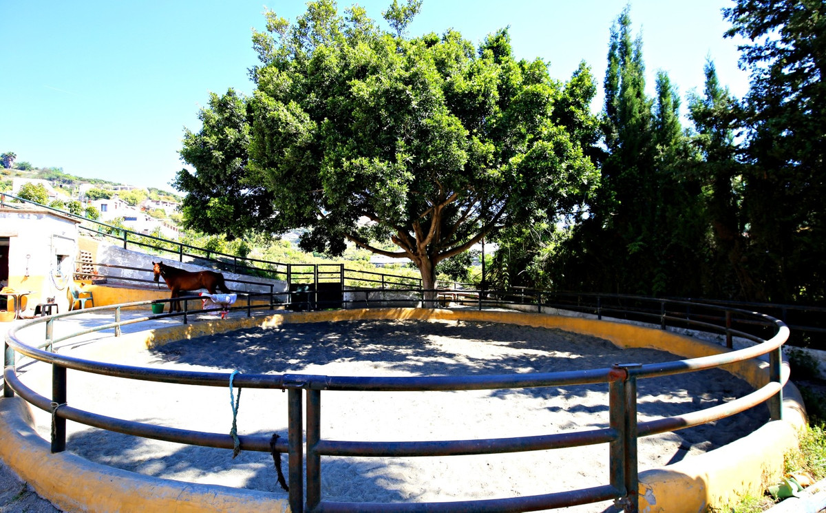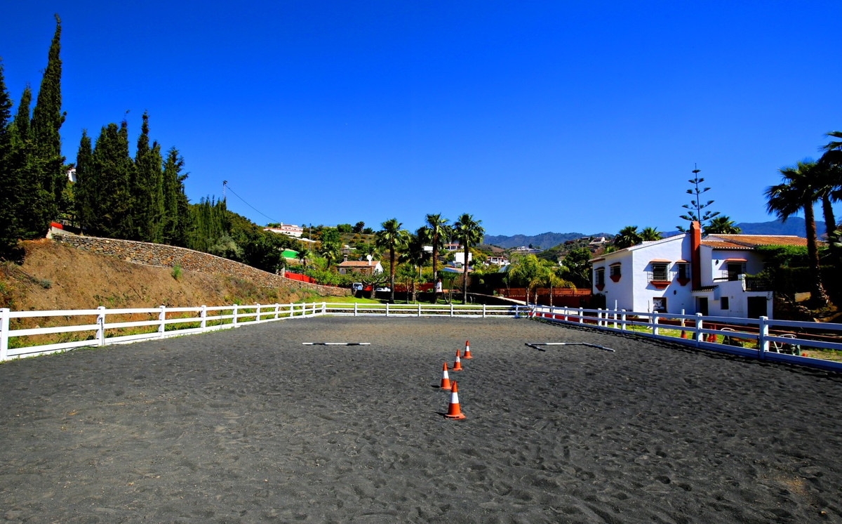 Exclusive and unique of its kind: a 16.000m2 Andalusian vacation resort with horse farm between Frigiliana and Nerja - with a built-up area of more than 1.600m2! In total, the resort has nine bedrooms, ten bathrooms and two guest toilets, spread over two traditional and authentically designed building complexes. The smaller house has a private pool as well as several terraces and consists of three bedrooms, three bathrooms, a large salon with fireplace and a fully equipped kitchen. The main building is divided into two wings, each with three bedrooms and bathrooms, a shared kitchen and a salon with fireplace. From both salons you enter the park area behind the house with its characteristic double pool. Moreover, a large garage under the main house can be easily transformed into two more independent living units; all the fixtures are already in place. The riding arena of the property measures 20x40 meters and is equipped with floodlights. Currently, the resort has two stables with a total of 13 boxes. Sounds like a true dream? We think so too - and are pleased to be able to present this exclusively marketed property to you in person on site or via virtual tour... here with us: on the sunny side of life.