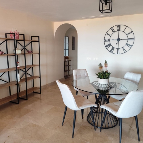 Magnificent FIRST FLOOR APARTMENT with spectacular sea views, located in an urbanization area at a short distance from Sotogrande harbour and close the beach. In impecable condiction, the apartment offers charming living room with fireplace and access to the private terrace, completely equipped kitchen, separate dining area, 2 garage spaces and 1storeroom. .. Built to an excellent high standard.