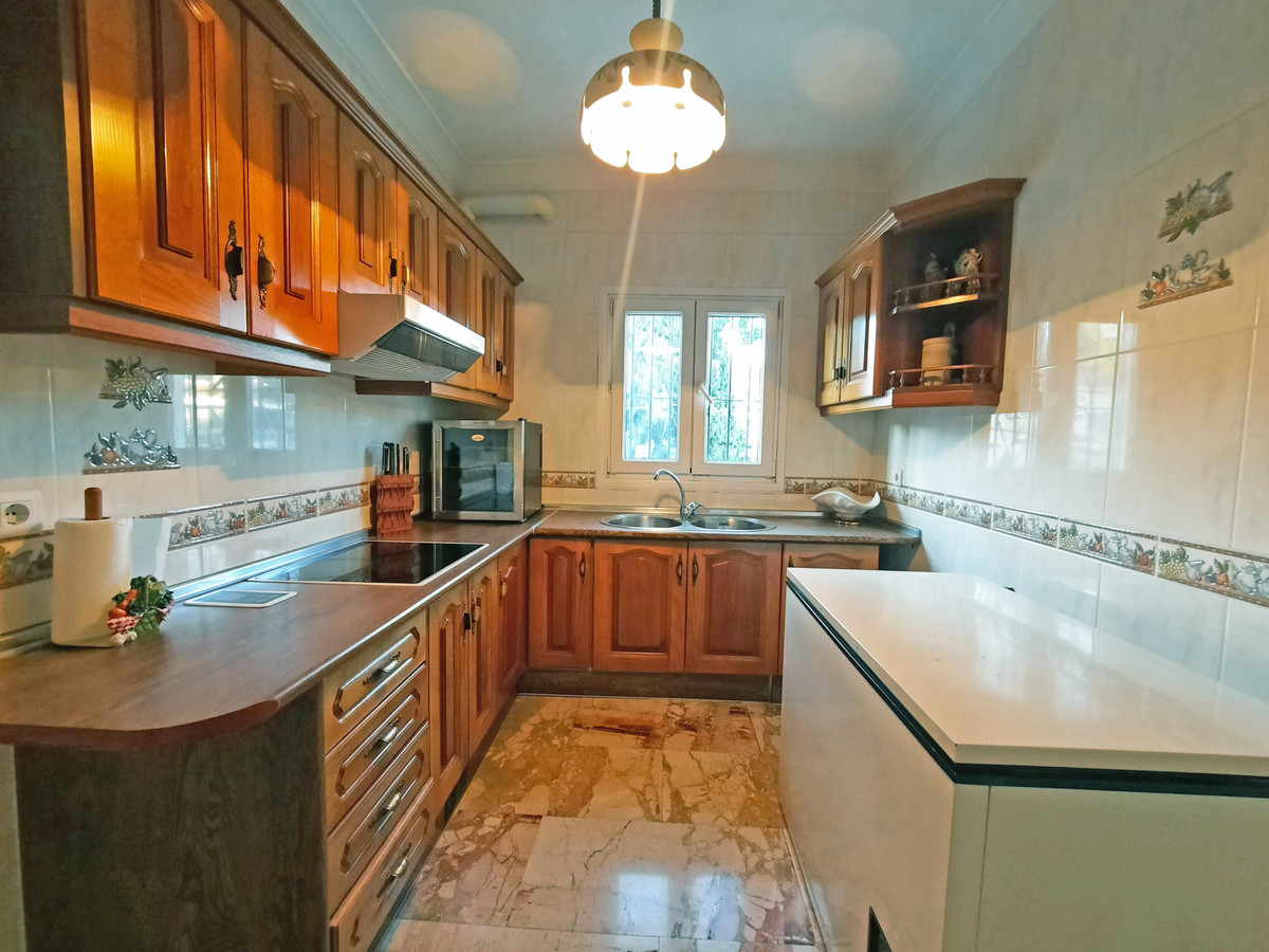 The house also offers a garage for 2 cars plus an extra carport for 2 more cars which is also separated if you want to split the house in 2, gas central heating and A/C in the main living-room and master bedroom.
