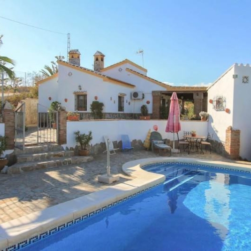 This detached finca on the outskirts of Guaro sits in a lovely position with views of the hills of Guaro scattered with Almond and Olive Trees.