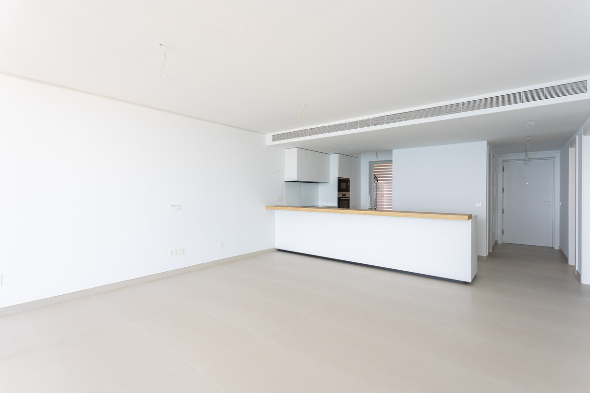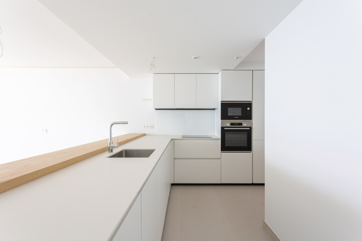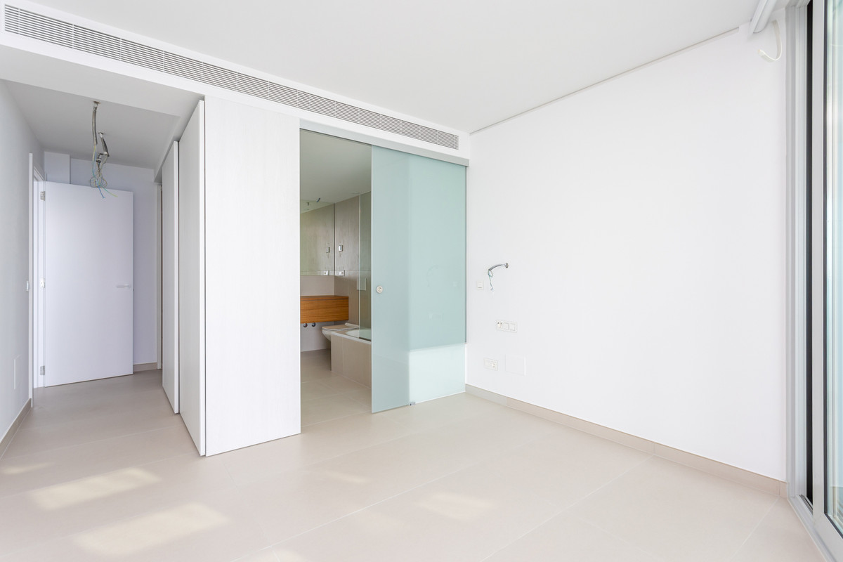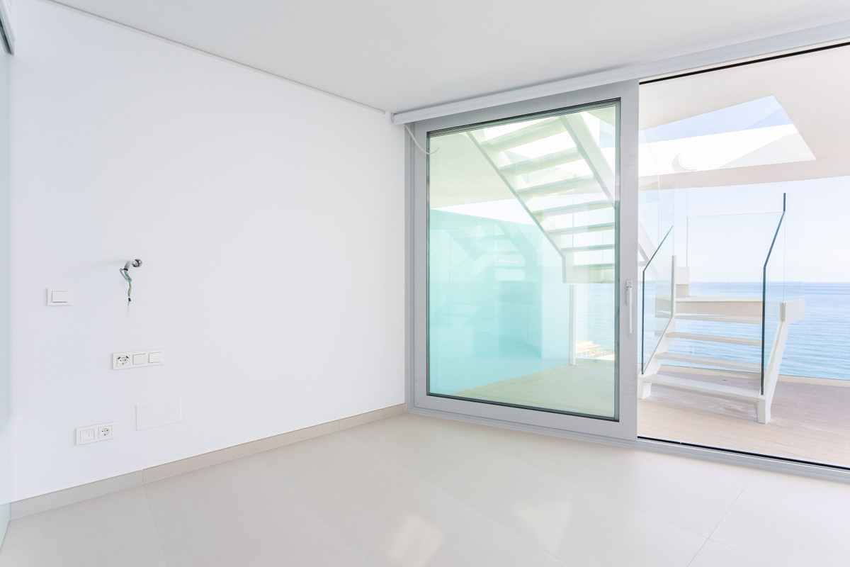 The property has a big open living room and kitchen looking directly towards the sea. There are two bedrooms. The master bedroom has an ensuite bathroom, but there is also a second guest bathroom. You can access the big terrace with an astonishing sea view both from the living room and from your master bedroom. Stylish glass staircase takes you to the rooftop terrace where you find a massive area with room for endless possibilities for your outdoor life under the sun. The rooftop has a jacuzzi and an amazing outdoor kitchen and loads of space for a luxury chill out area. The area is partly covered by a big pergola, and one could glass that area in order to created a covered chill out space. Only high quality building materials have been used in this development. For your convenience, there is an underfloor heating in the bathrooms and fibre optics internet cable connection. It's an ideal place to work distantly and enjoy outdoor life.