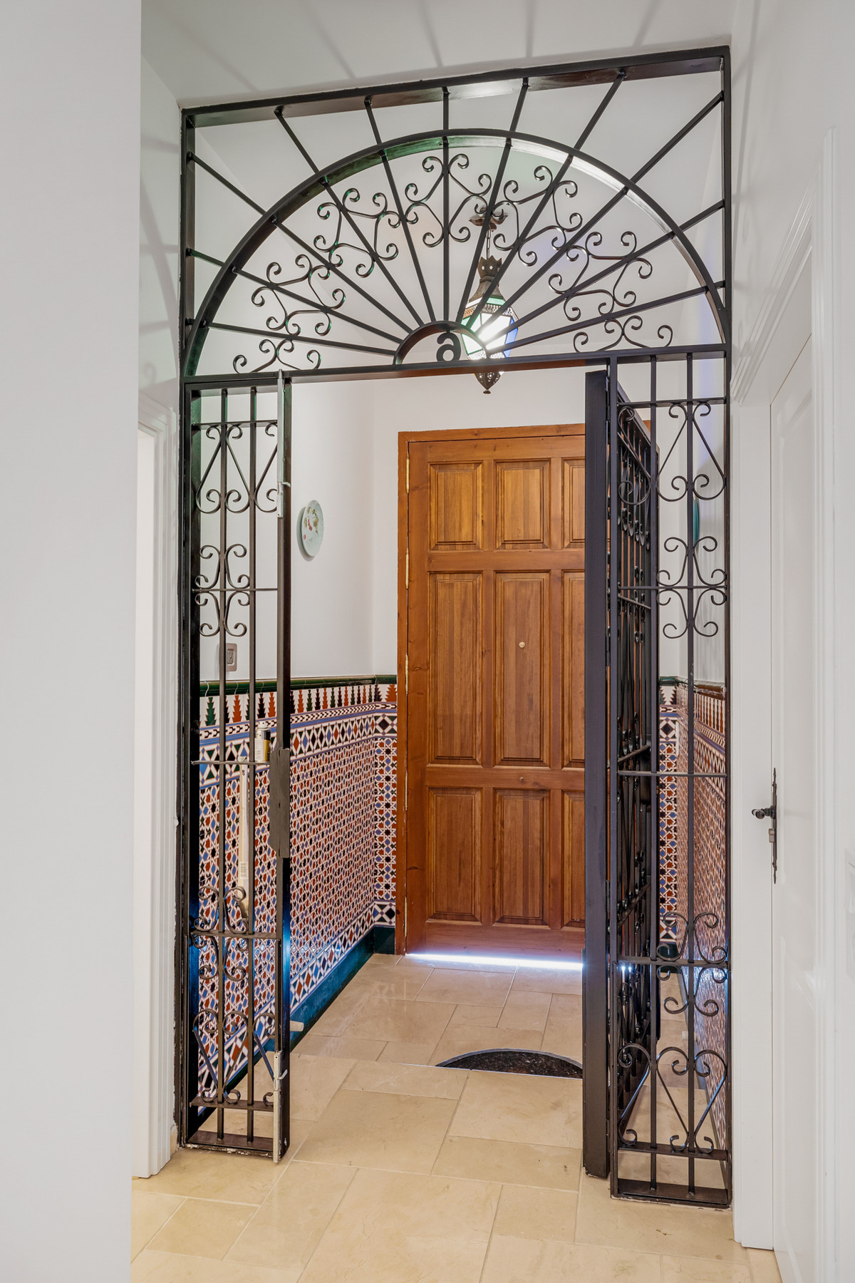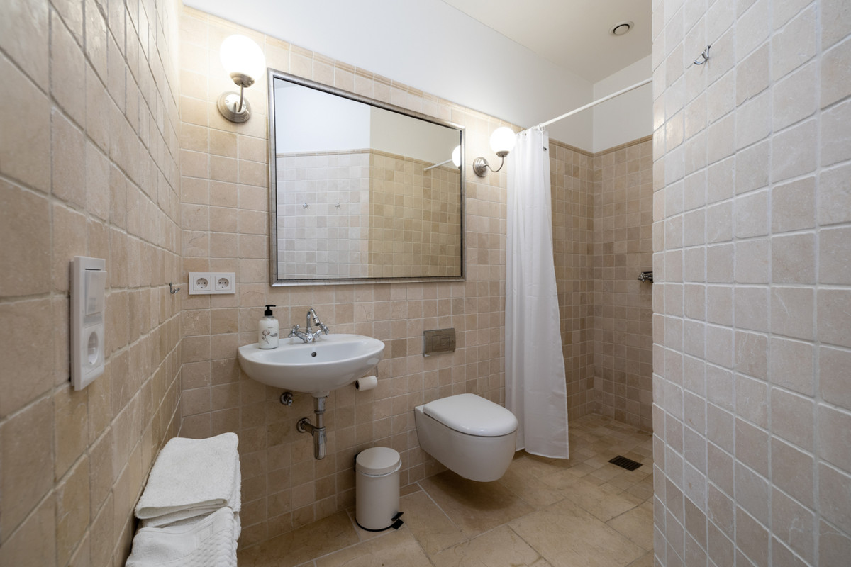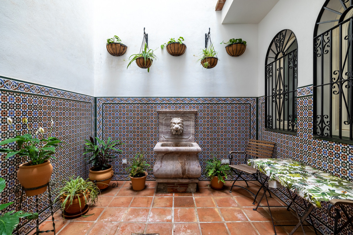A typical Andalusian entrance welcomes you with 3 bedrooms and 3 bathrooms ensuite. There is also a tiled indoor patio with a fountain and plants to have a drink and relax from a busy day.