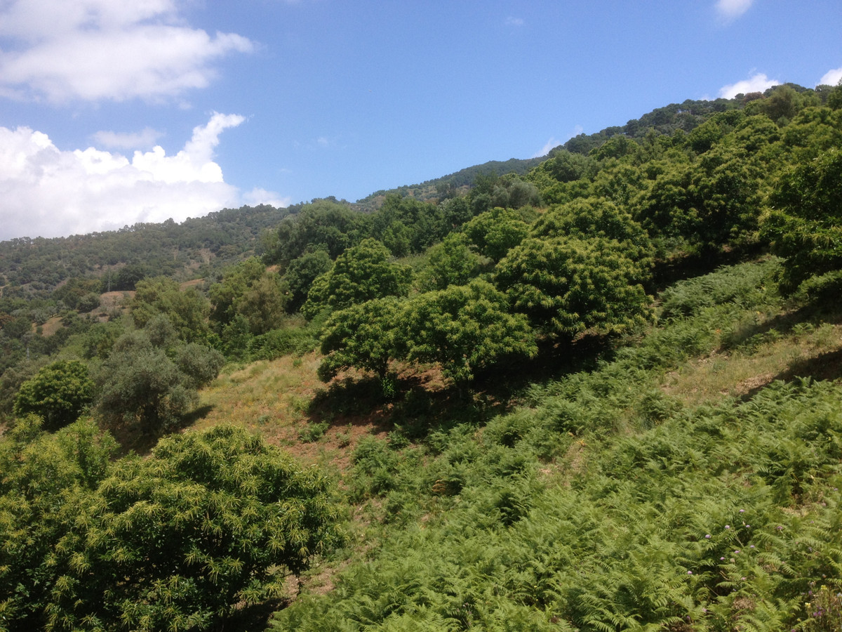 Trees: almond trees (1,000), chestnut trees (500), cork oaks, strawberry trees, gall oaks, pines, olive trees, carob trees.