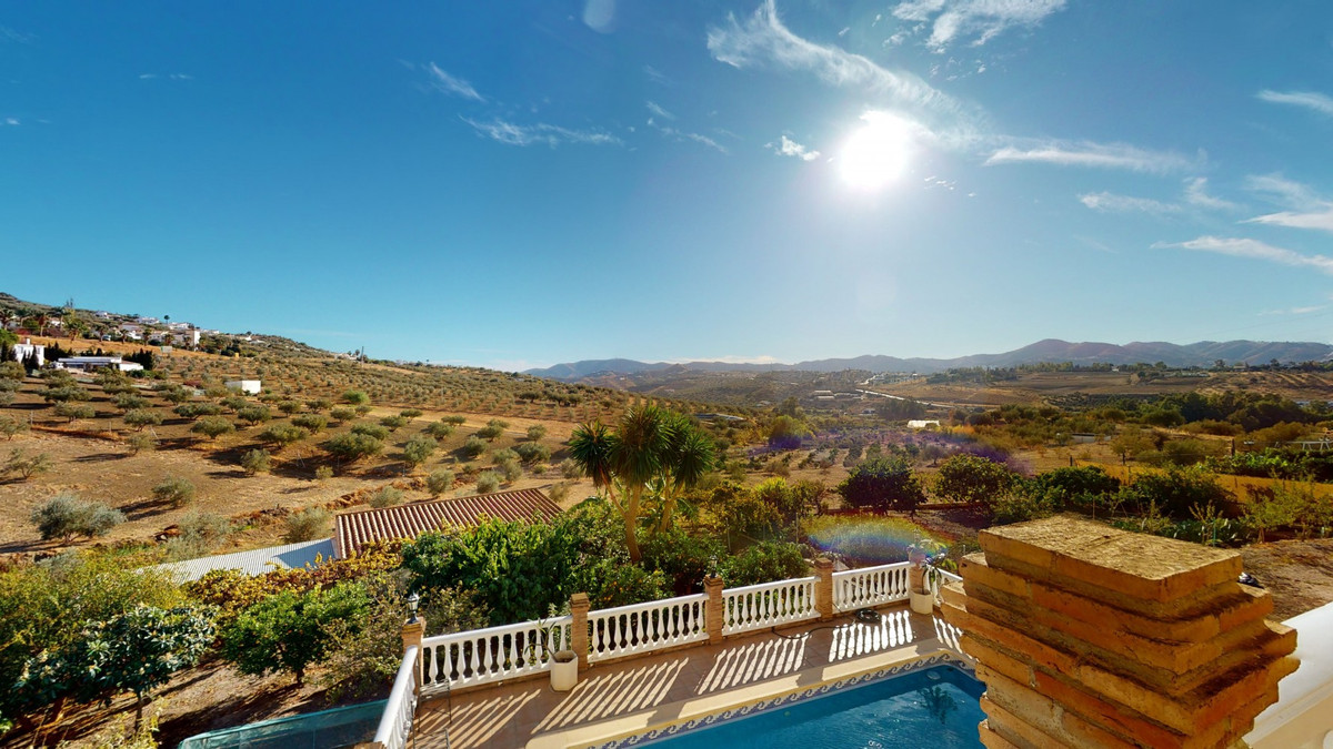 This well-located spacious villa offers the possibility for two families to live separately. The garage of 217 m2 has room for 5 cars, an office and storage space. Entrance to the garden with nice pool, shower, fruit trees and henhouse. Separate room with extra kitchen/barbecue and covered terrace. Ground floor of 216 m2 with hall, spacious living room, adjacent large fully equipped kitchen, storage room and large outdoor terrace. Three bathrooms, three bedrooms with fitted wardrobes and air conditioning hot/cold. Laundry room that can be used as a bedroom. Upper floor of 159 m2. Living room with high ceiling, fully fitted kitchen with pantry, laundry room, bathroom. Outdoor terrace. The house was built to a very high standard with the best materials as the owner was the builder. We are pleased to be able to present this dream property to you soon, either personally or via virtual viewing. Because this world, it is unique - just like our Axarquía. In Andalusia. On the Costa del Sol. Here, on the sunny side of life...