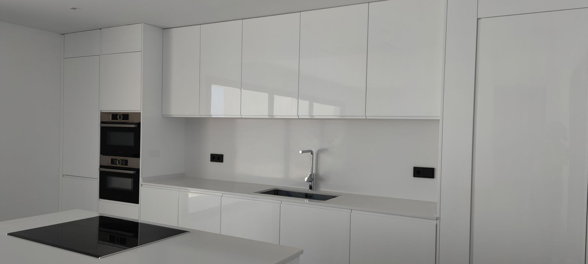A bioclimatic design means that excellent high quality materials have been used, but at the same time with the aim of reducing consumption and thus protecting the environment. SALONI 90x90 ceramic floor tiles. Certified natural OAK wood parquet. TECHNAL aluminium carpentry, with thermal bridge break, double glazing with solar control, air chamber for cold/heat insulation and security glass. Lime paints, with smooth, opaque and water vapour permeable material, free of VOC (volatile organic compounds). Installation of SCHNEIDER electrical network and mechanisms. Double-flow mechanical ventilation system with enthalpic recuperator and aerothermal support with ambient temperature and humidity control. Bathroom cladding with MORTEX micro-mortar. Natural, ecological and breathable gypsum and cellulose fibre panels. GEBERIT bathroom fittings, TRES taps, home automation for lighting control and KNX blinds.
