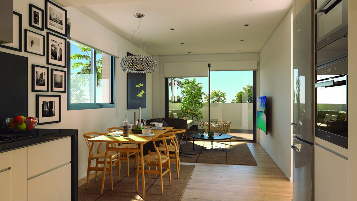 In the building you will find 2 and 3 bedroom homes with two bathrooms, all of them with large terraces facing the sun. The ground floors have a garden and the last two have a private space in the solarium, from which to enjoy the sun and our magnificent climate. A common area with a large pool and an indoor gym complete a residential complex in a truly privileged area.