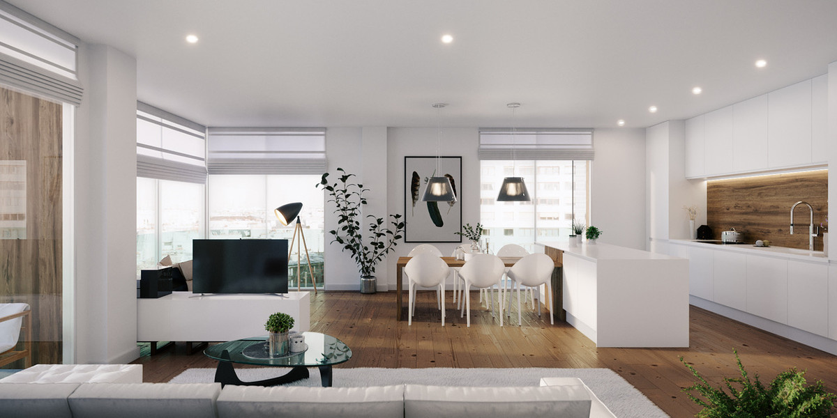 There's an option to change the closed kitchen to an open kitchen with a small or large island which gives a more open feeling to the apartment.