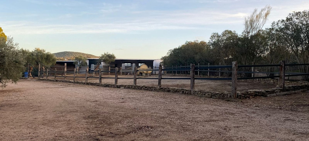 On the same farm, we have 350 olive trees and 8 carob trees in full production, corrals for animals and part of the land is used for planting feed for the horses.