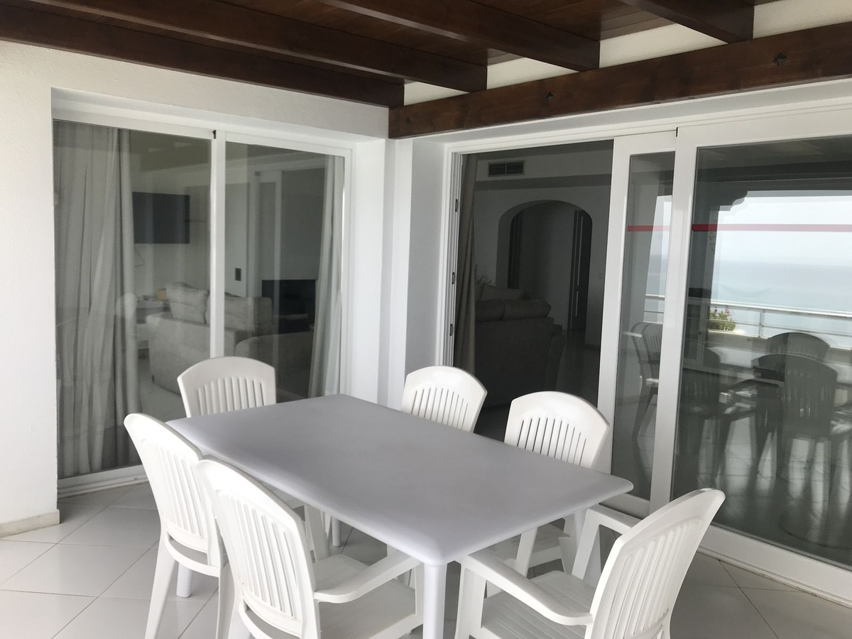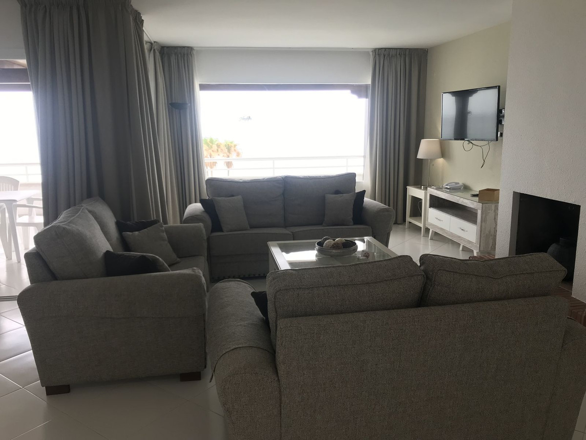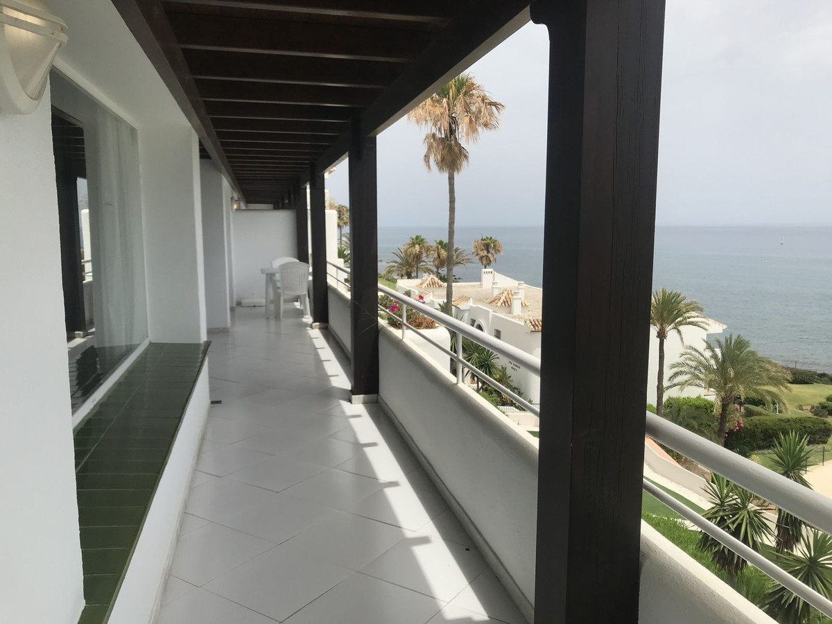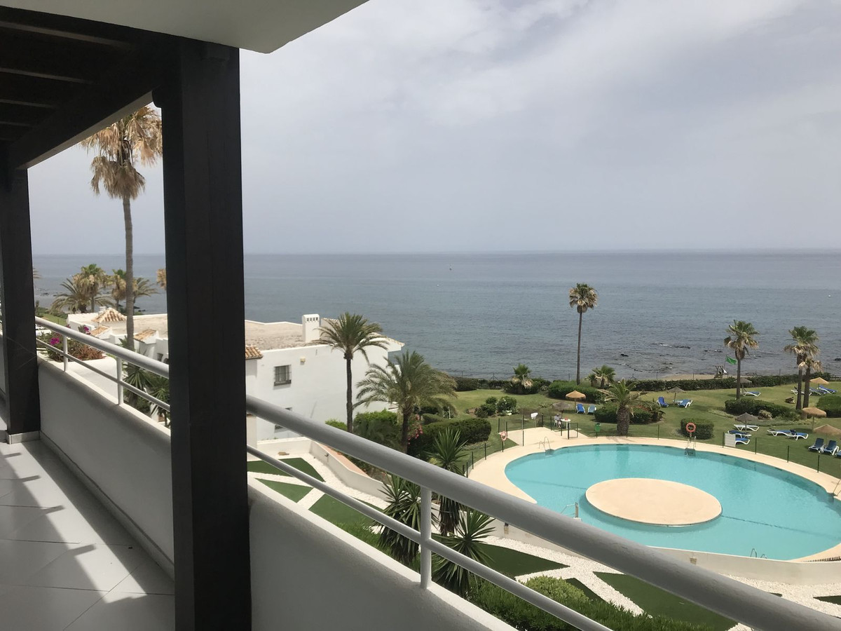 Fantastic top floor three-bedroom apartment with amazing sea view. Each bedroom has a bathroom en suite. There is also a separated toilet for guests. Main bathroom has sauna and whirl bath. Very bright. Front line beach. Garden and swimming pool areas just recently reformed. Gated community with private 24 hours security.