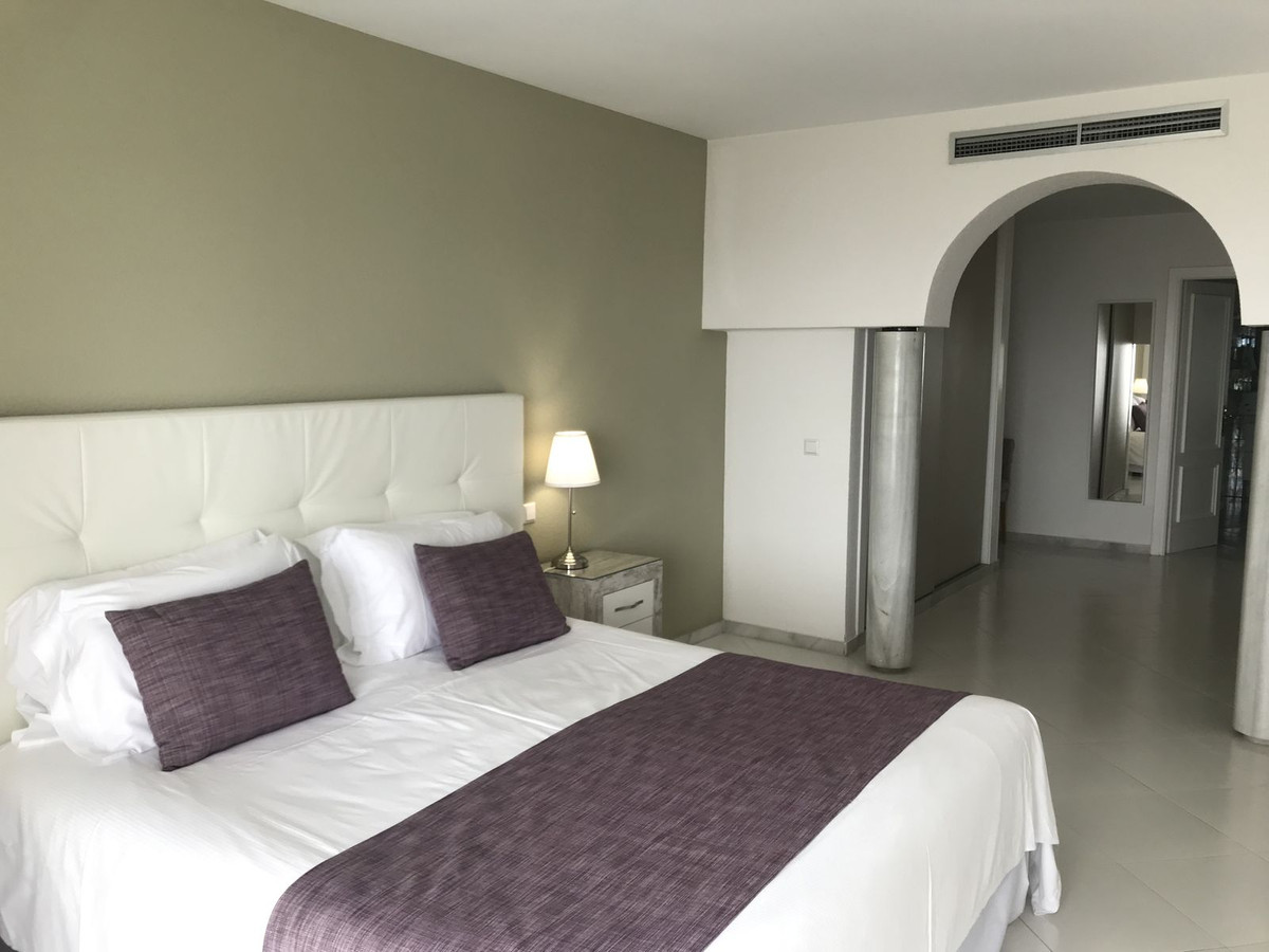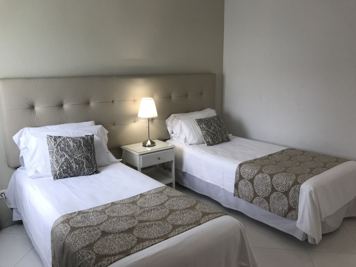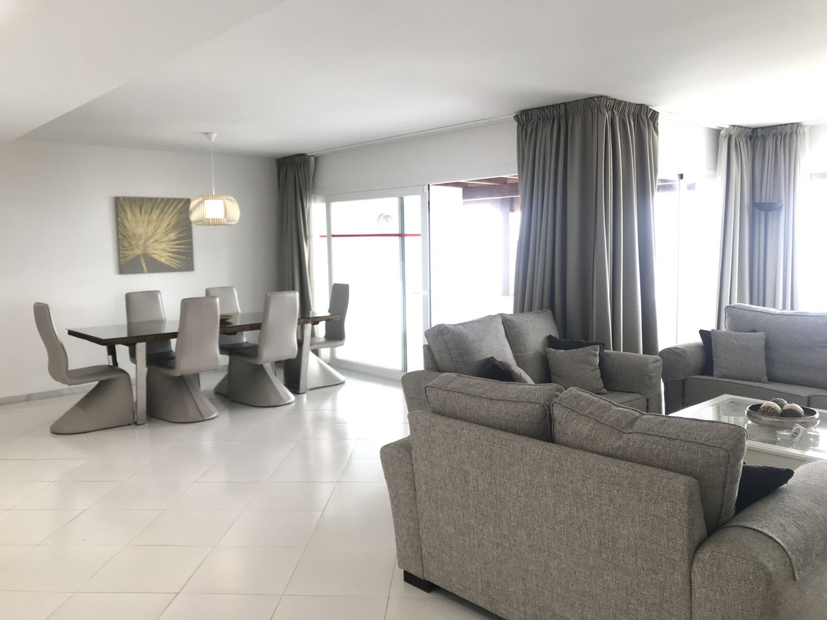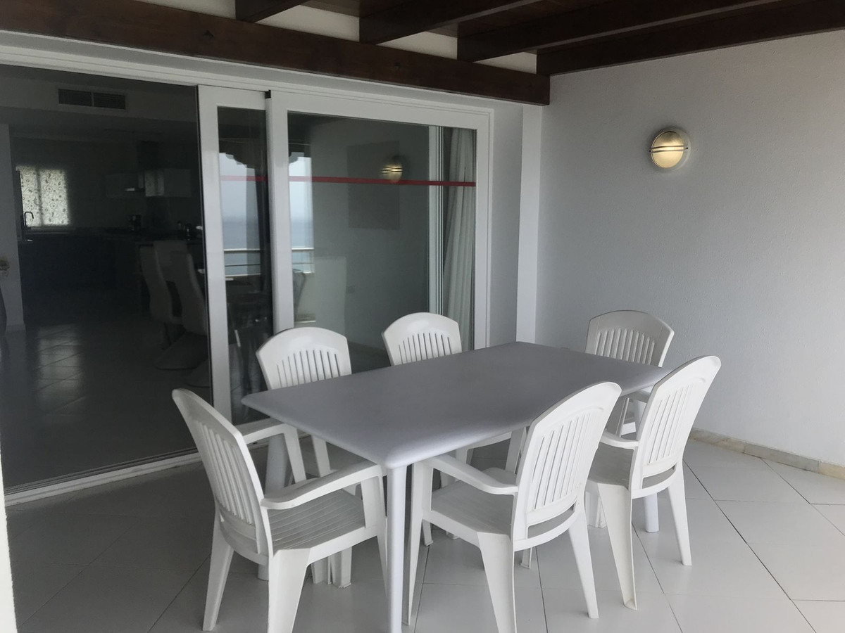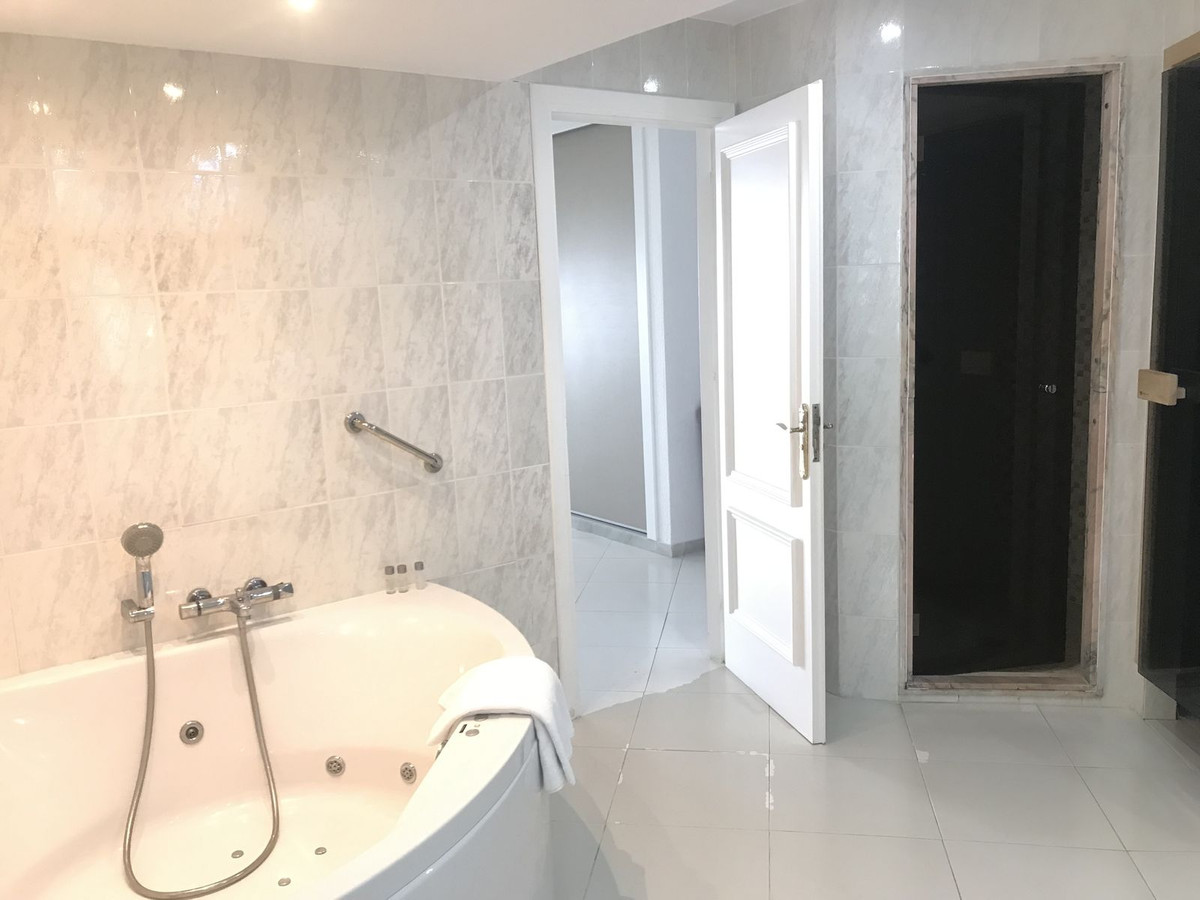 Fantastic top floor three-bedroom apartment with amazing sea view. Each bedroom has a bathroom en suite. There is also a separated toilet for guests. Main bathroom has sauna and whirl bath. Very bright. Front line beach. Garden and swimming pool areas just recently reformed. Gated community with private 24 hours security.