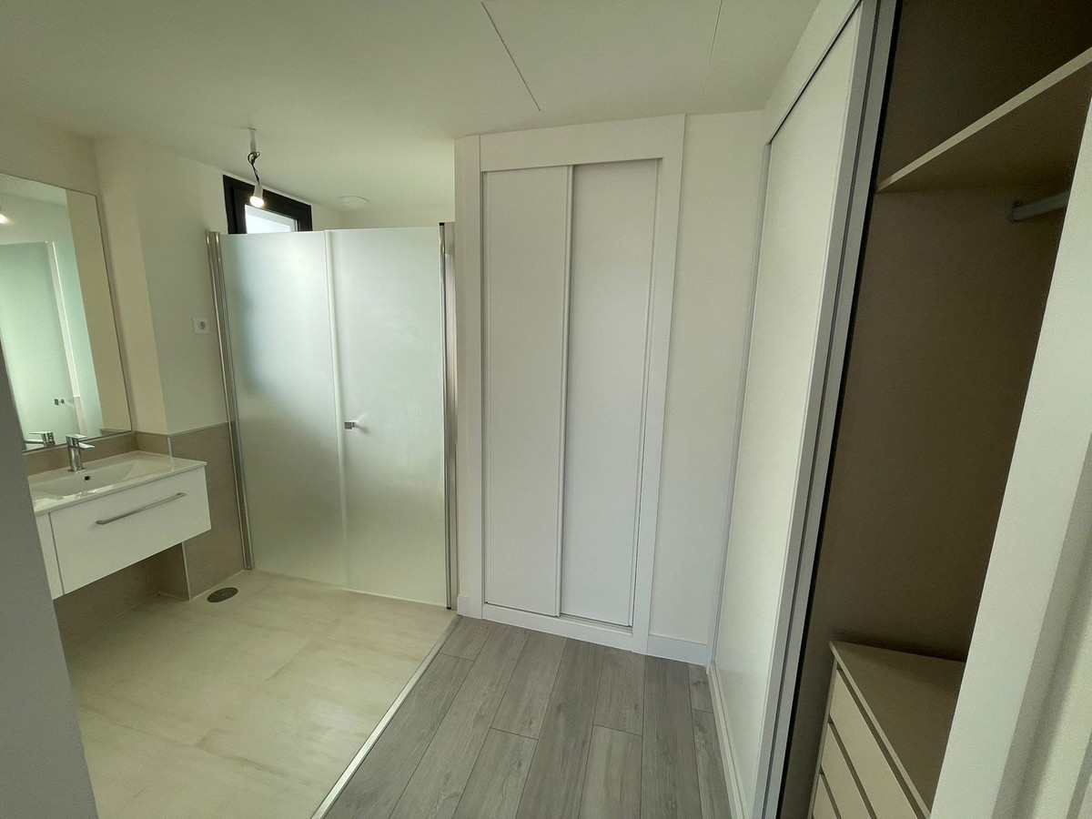 It is distributed in a spacious living room with access to a large terrace with frontal views of the sea, a double bedroom with a bathroom en suite and dressing room, with access to the terrace from it. It has two large bedrooms and one more bathroom. Full kitchen open to the living room and access to the interior patio with laundry area. From the terrace you can access the solarium by very comfortable stairs, from where you can enjoy fantastic views. It has two underground parking spaces and two storage rooms. All this with unbeatable views and fantastic qualities.
