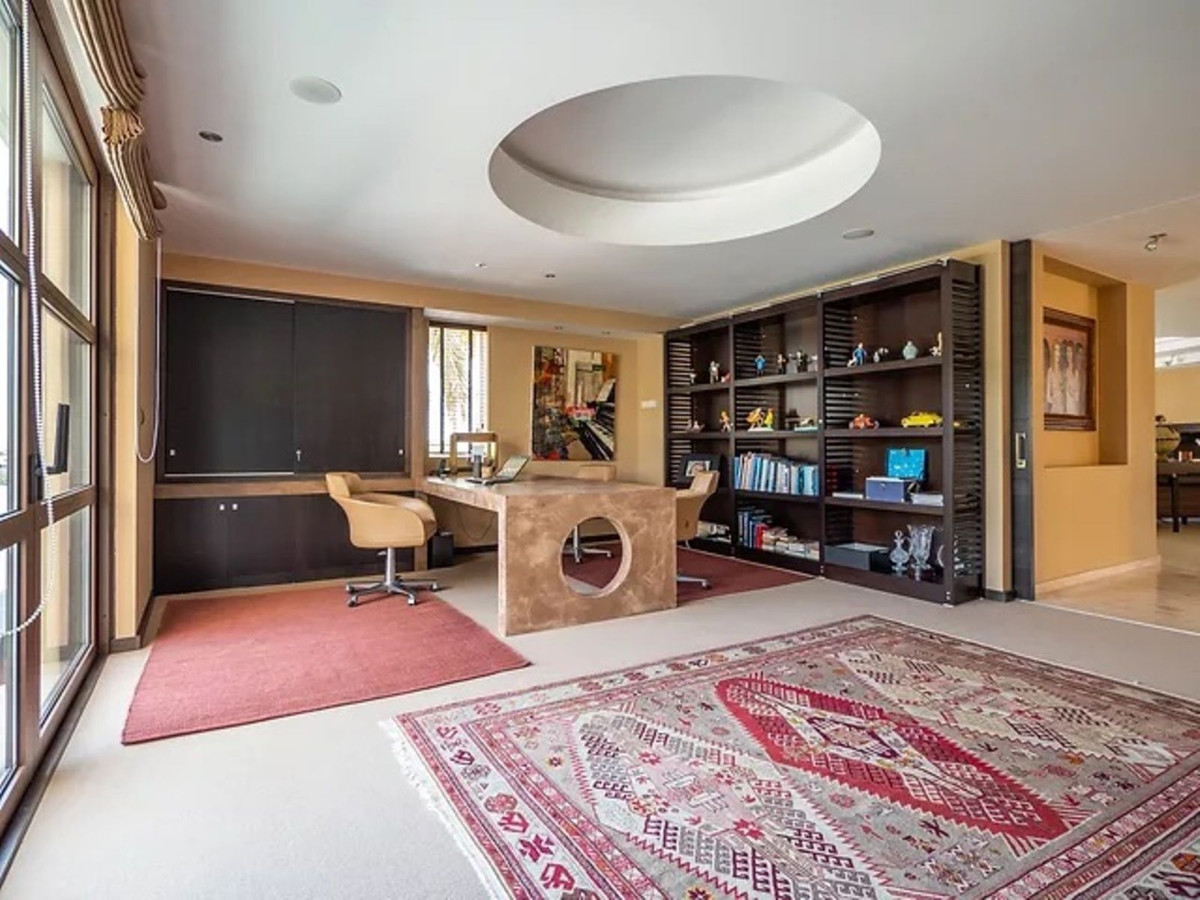 The lower floor consists on one side of the house for housekeeping quarters with living room, kitchenette and separate toilet, bedroom, bathroom and spacious patio. In between is a 6 car garage and hobby room. The south side has a cinema room, massage room, wine cellar, pool/bar room as well as an extensive gym area, inside jacuzzi, Klafs Swedish sauna with infrared.