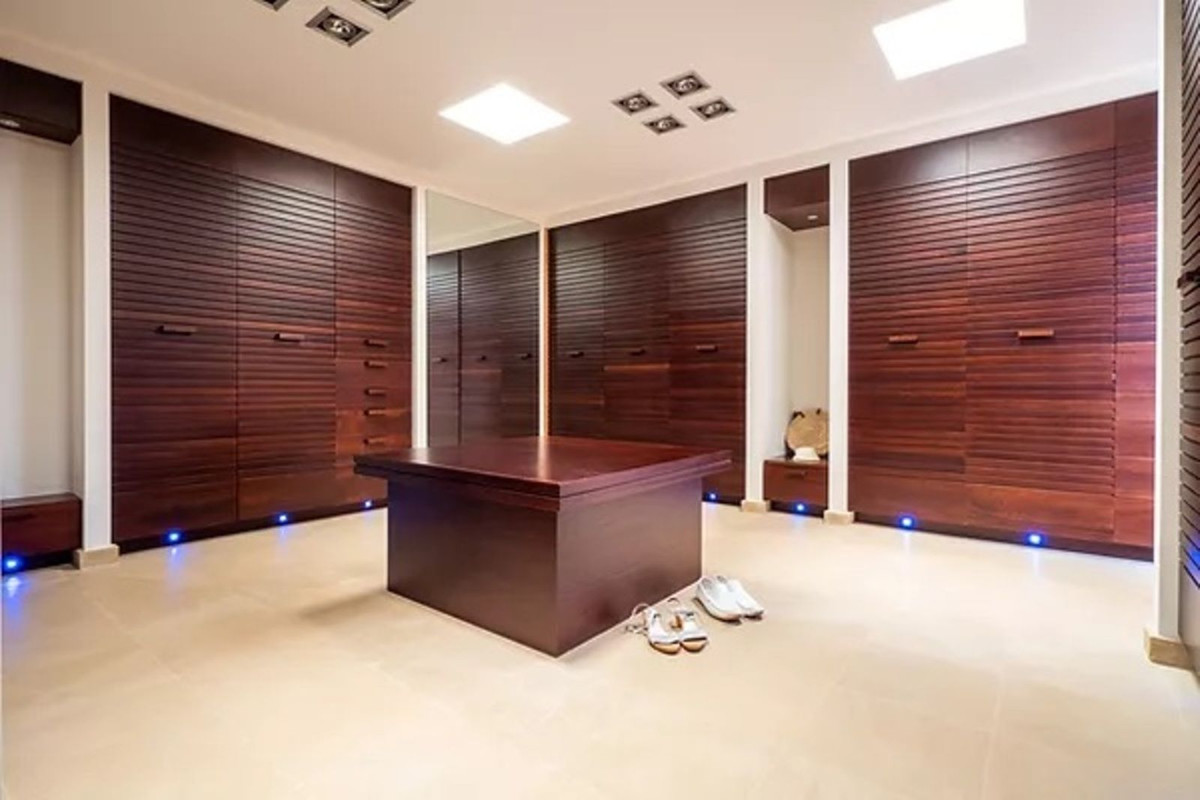 The upper floor consists of all the 5 bedrooms with ensuite bathrooms, each properly designed with refreshing ideas and little surprises. The east wing is reserved for the Master Suite, consisting of the bedroom with panoramic window to the sea, rising tv screen in front of the bed, ensuite bathroom with terrace and outdoor shower. The walk-in closet is custom designed with wooden cabinets. There are safety doors and secret separations for children's safety.