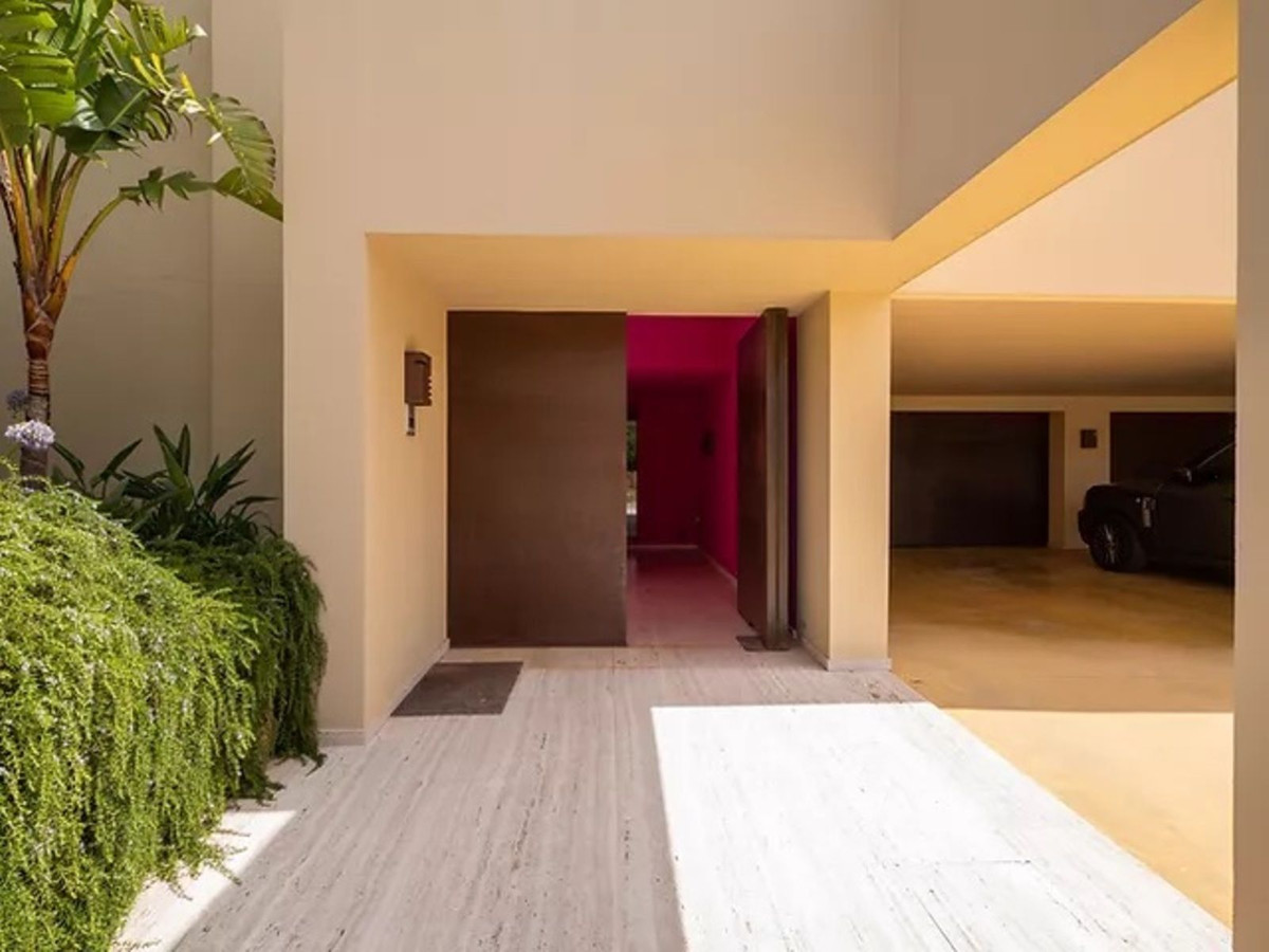 The main rooms, decorated with the nicest Georgetti furniture and kitchen all have access to the outdoor with certain areas having the Barragan-specific strong colours. Bright walls accentuate the space on the terraces near the Koi pond and the sun protected outside BBQ area, which connects to a split level garden with fountain and strong color wall surrounding, protected to wind and offering total privacy. The infinity swimming pool with stunning Siccis mosaic, IPE wooden terrace and Mexican style hut. On sunny periods the outside blends with the inside, the lights and shadows play like an artist canvas. The most dramatic style part of this mansion is the spacious outdoor living area with glass roof and electric sculpted lattice shutters which play with ever changing quality of light and shade from roof and front part separating the garden without taking away the sea view.