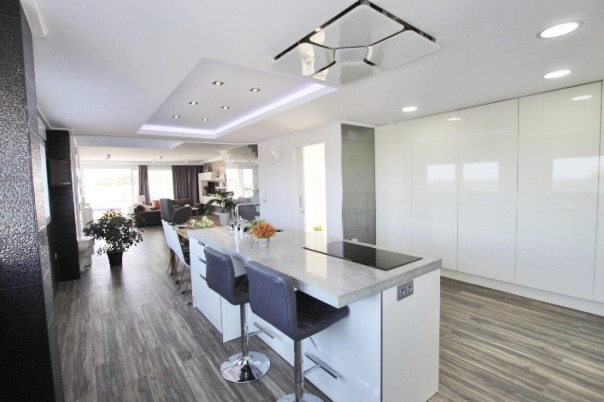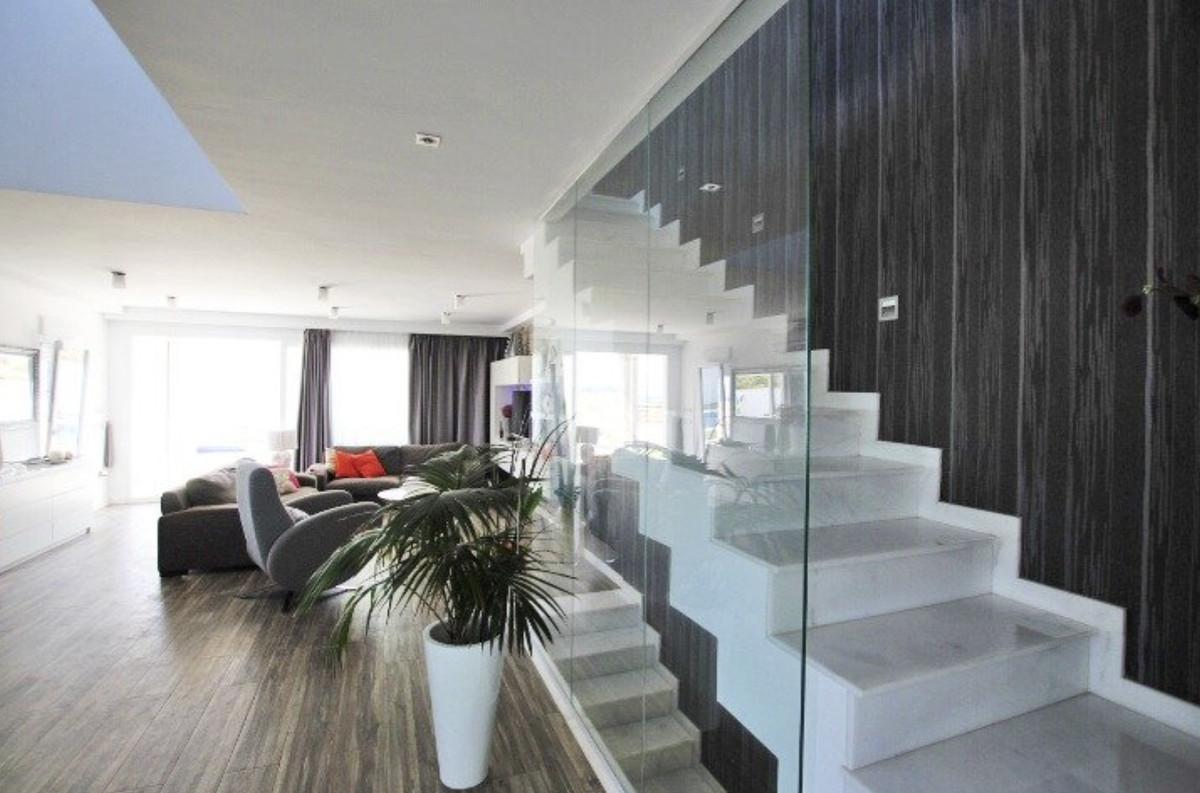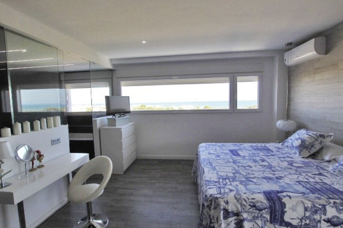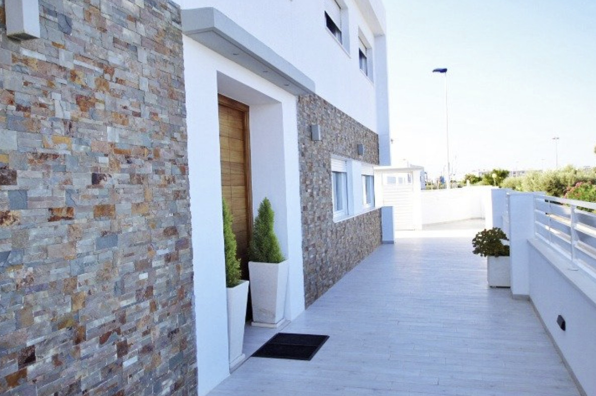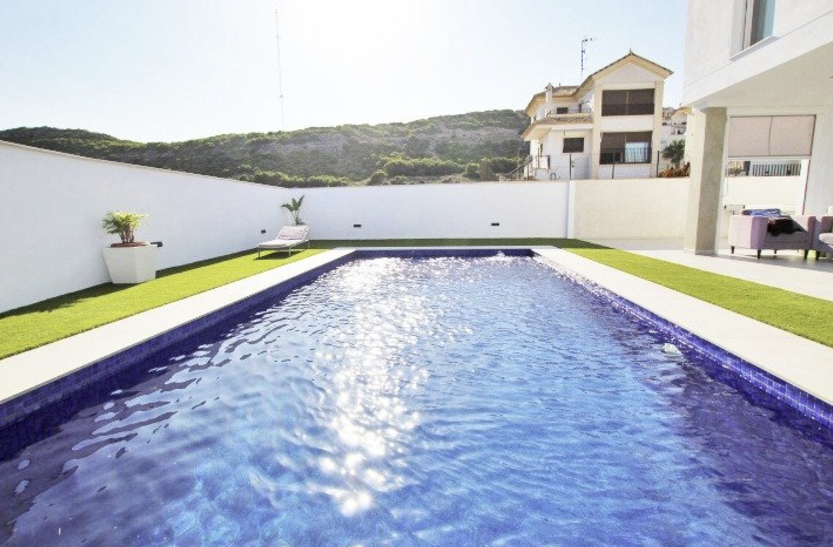 Our real estate agency offers a 380 m2 villa built on a 375 m2 plot with sea views from all rooms in the house. The corridor on the first floor has a view of the sea. The living room is located on the main floor next to the kitchen and a service bathroom. Very spacious house, where you can receive all your guests and even hold celebrations with a large number of friends. The kitchen is an island, with integrated appliances and a large number of built-in cabinets in which all the equipment is integrated. The entire main floor has large windows with sea views. The carpentry that makes up all the windows is made of PVC with a double chamber and 8 mm double glazing, which results in perfect soundproofing inside the house. The interior carpentry are white lacquered wooden doors. The façade is made of monolayer painted in water-repellent white and decorative brick in its lower strip. The first floor has a suite with a large bathroom with bathtub and shower, from this last room there are frontal views of the sea. The master bedroom has a large dressing room on the side. The main bedroom area is separated from the rest of the rooms by a glazed corridor with a viewpoint overlooking the sea, which provides great light to the house. And two large bedrooms, one of them set up as an office to work from home or to relax having a coffee looking at the sea. On the second floor there is an individual bathroom to service the bedrooms. The basement has a gym area, and more than 100 m2 to park cars, it also has two large storage rooms to use as a cellar. The exteriors are with views of the sea and the mountains that surround the fantastic town of Guardamar del Segura. On the porch there are unobstructed views of the sea and the mountains next to the pool. The pool is 4m x 8m in size and is illuminated: it can be illuminated with different shades of colour. A villa to enjoy immediately and only 500 meters from one of the best beaches in the Mediterranean Sea.\n