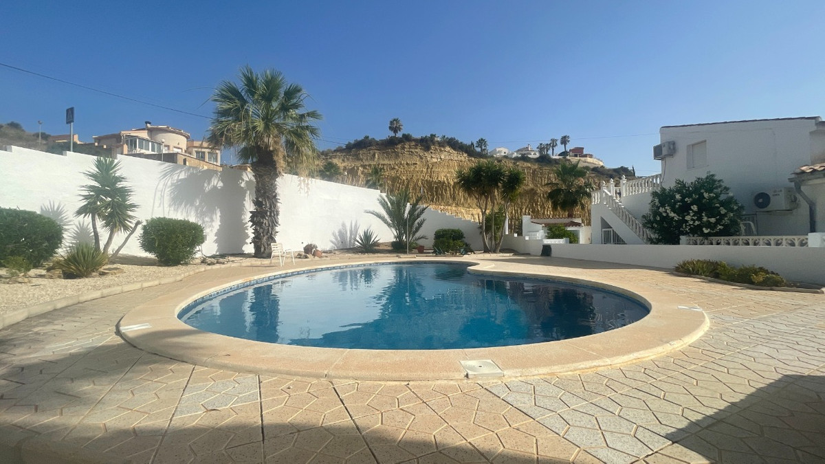 This three bedroom, two bathroom detached villa is located close to the La Marquesa Golf course in Rojales/Ciudad Quesada.The property has recently been redecorated and briefly comprises of a large lounge/diner, kitchen with space for a fridge freezer, two double and one single bedrooms. The two doubles both have built in wardrobes and the master has an ensuite. There is also a family bathroom. Externally there's a driveway providing off road parking along with a terrace to the front.Spaces at the back for tables and chairs for entertaining with a roof top solarium for sunbathing view stunning views over the golf course.Under the house there's a useful storage room with plumbing for a washing machine. You also have access to a lovely communal pool.Please contact us now for a viewing as we do not anticipate this property being on the market long!Within walking distance of the property you have the La Marquesa Commercial Centre where there is a mix of bars, restaurants, a bakery and supermarket.Also on a Thursday there is the popular market in Rojales and here also there is a traditional mix of amenities, bars and restaurants.Just over ten minutes in the car and you are in Guardamar. This traditionally Spanish fishing town has a vibrant mix of amenities along with miles of glorious beaches and a night market.