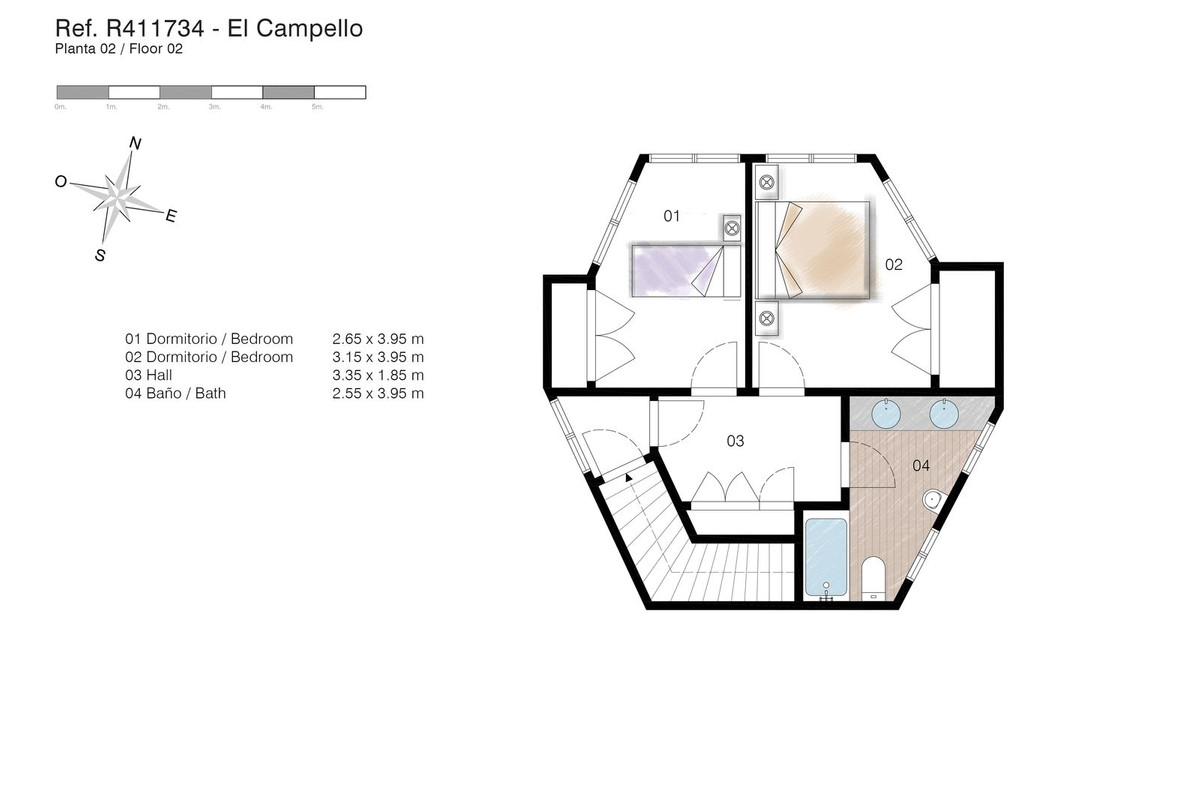 Bottom floor: Open plan lounge-kitchen-dining area, double bedroom, good-sized bedroom and leisure room. 2 bathrooms on this level one with a shower and the other with a bath and shower. Garage and store room.
