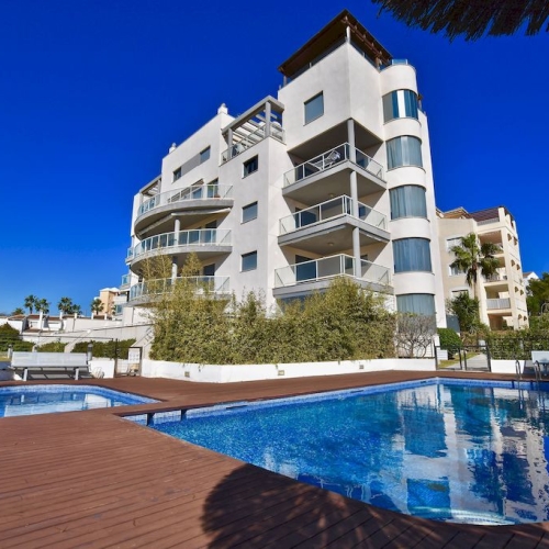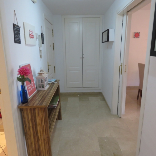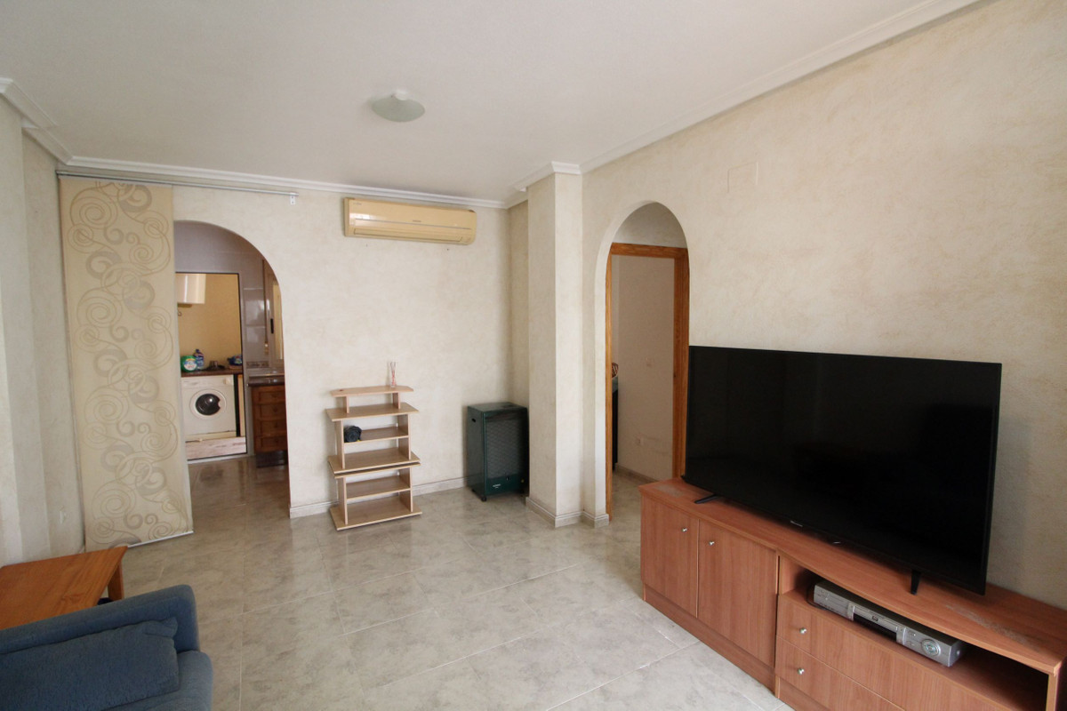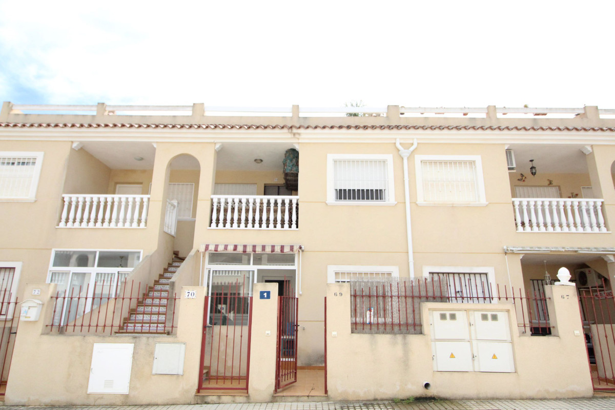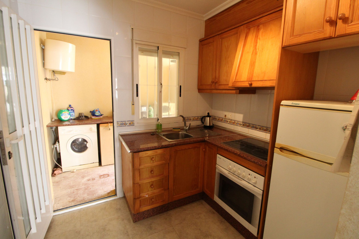 This property is a ground floor apartment with added extras such as a glazed in front terrace and a covered utility room and back yard and a nice tiled front garden. Inside the apartment the lounge is tastefully decorated and there are 2 bedrooms with fitted wardrobes plus a family bathroom. There is use of a good sized communal pool to help you relax in the sun.