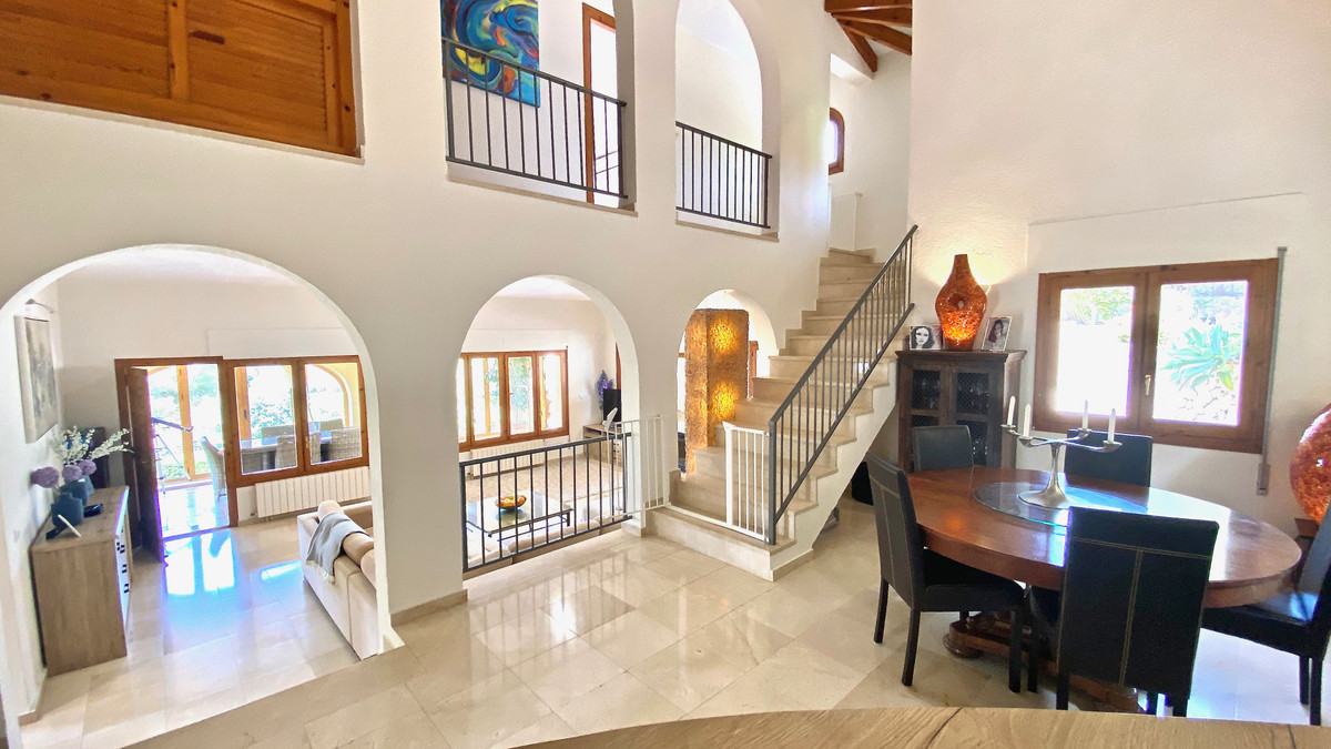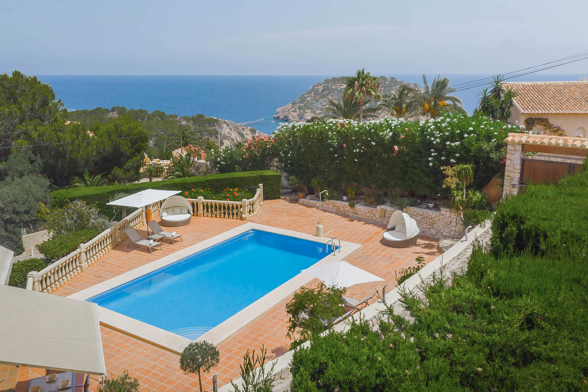 Villa for Sale in the magnificent area of Portichol with direct views of the Sea. This wonderful villa with recently renovated with a privileged location. It is located very close to Cala La Barraca, the main house is distributed over 2 floors and has three bedrooms with fitted wardrobes, two bathrooms, large living room and dining room with double height and kitchen. It also has a totally independent guest apartment with two bedrooms, a bathroom, kitchen and living room. The pool is oriented south and with very well maintained gardens, with many trees and nature. Ideal property to enjoy a wonderful holiday or second residence.