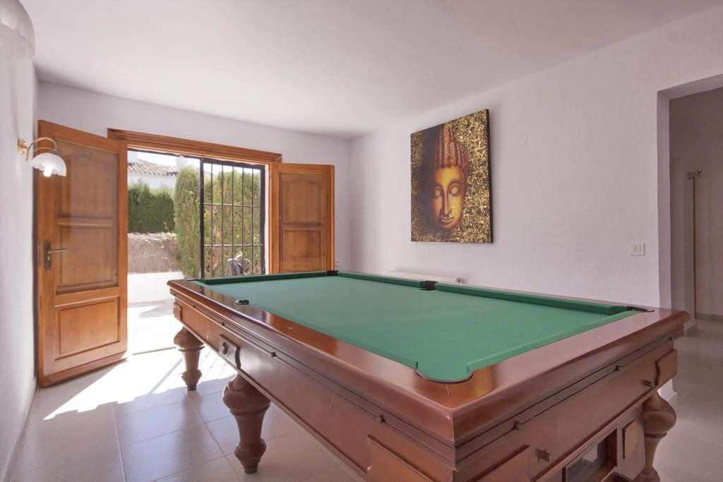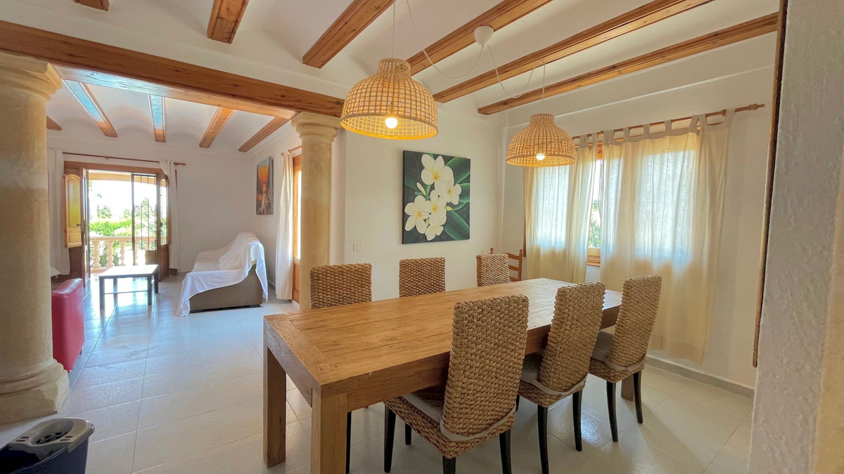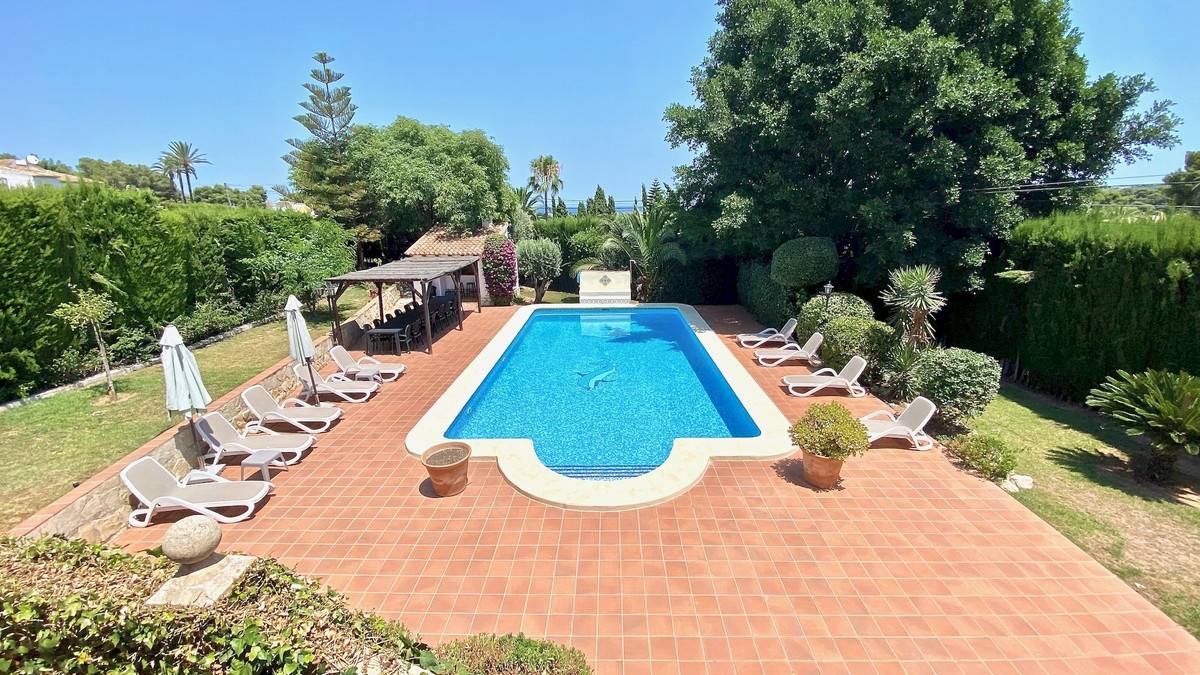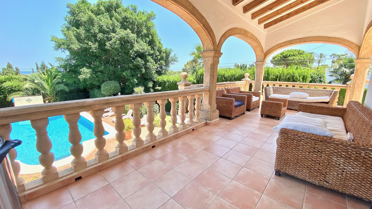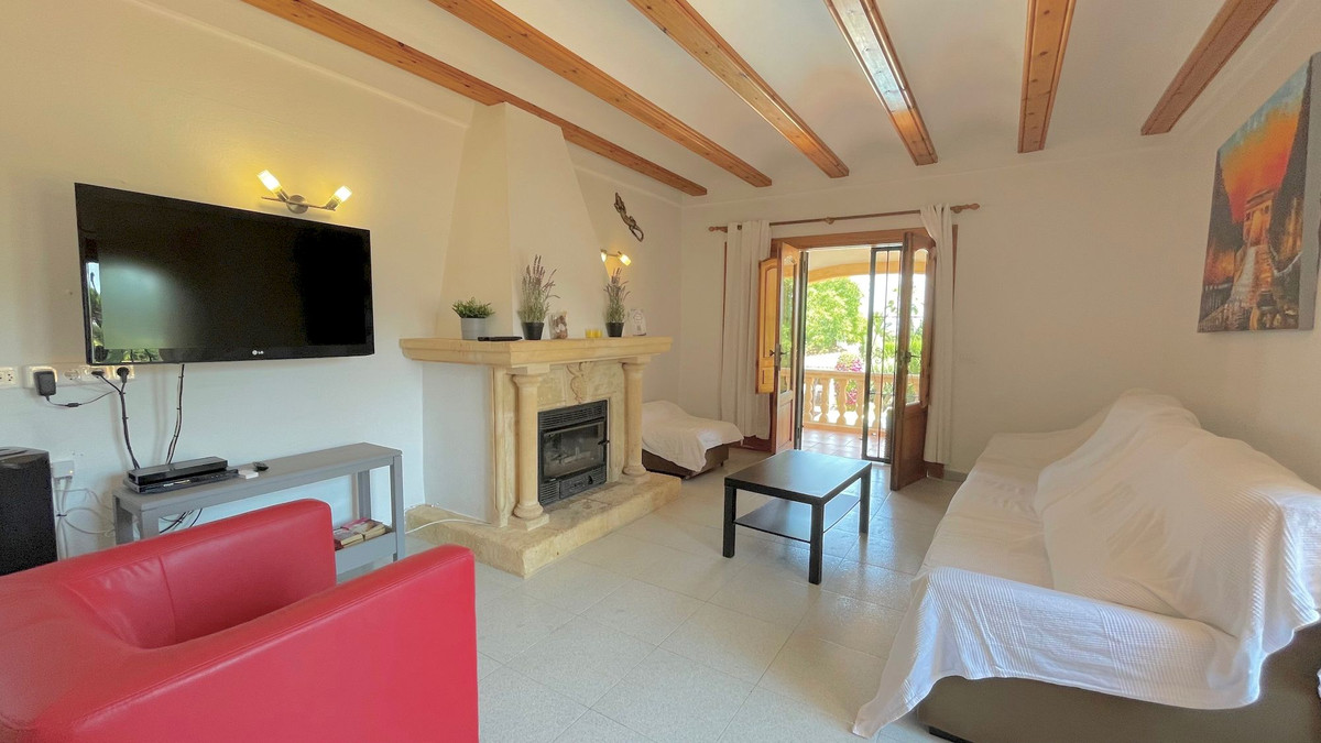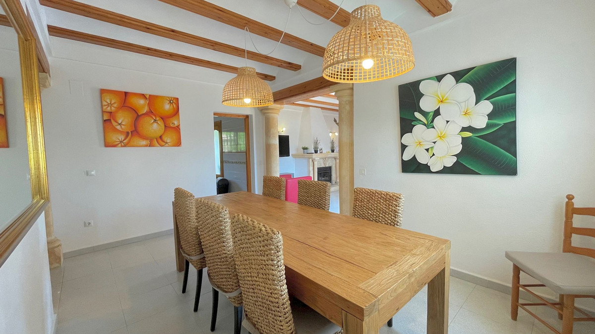 Classic villa for sale located a very short distance from the Arenal and all services. This magnificent property located on a flat plot, is distributed over 2 levels. On the ground floor we find four bedrooms with fitted wardrobes, two bathrooms and games room. On the upper floor there are three bedrooms with fitted wardrobes, two full bathrooms, large independent kitchen, dining room and cozy living room with fireplace and window door to the large terrace that overlooks the pool and with some sea views, summer kitchen by the pool with gazebo for many people, totally private garden with cypresses 3 meters high, garage, heating by gas panels throughout the house. Consult us for more information!
