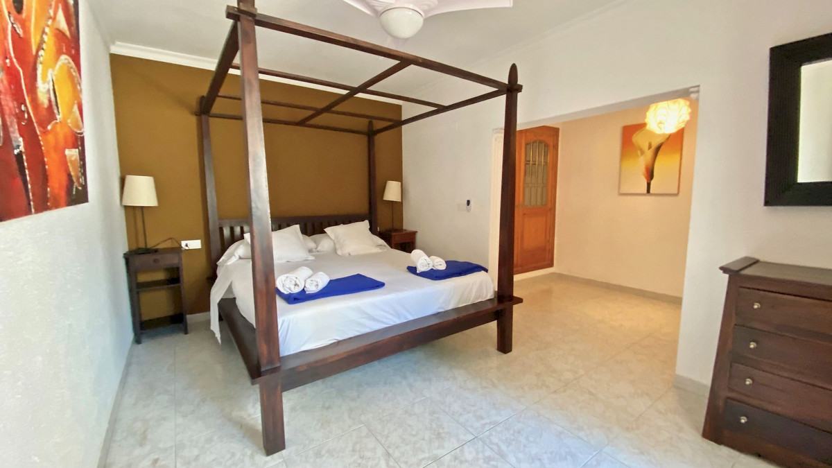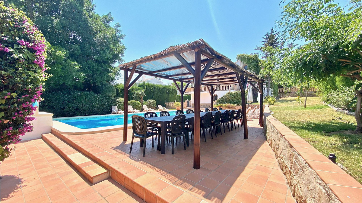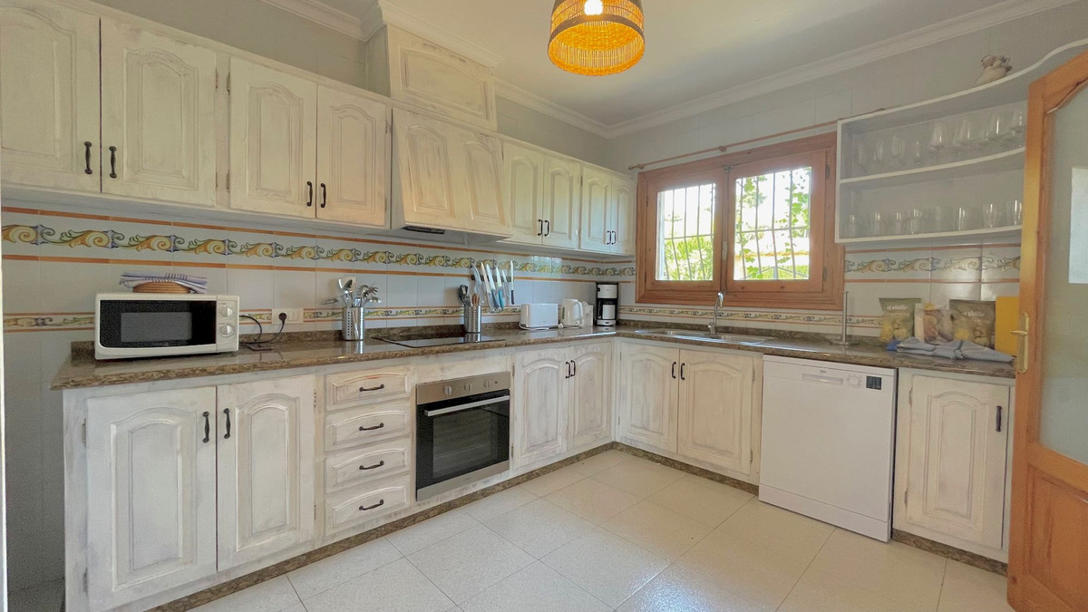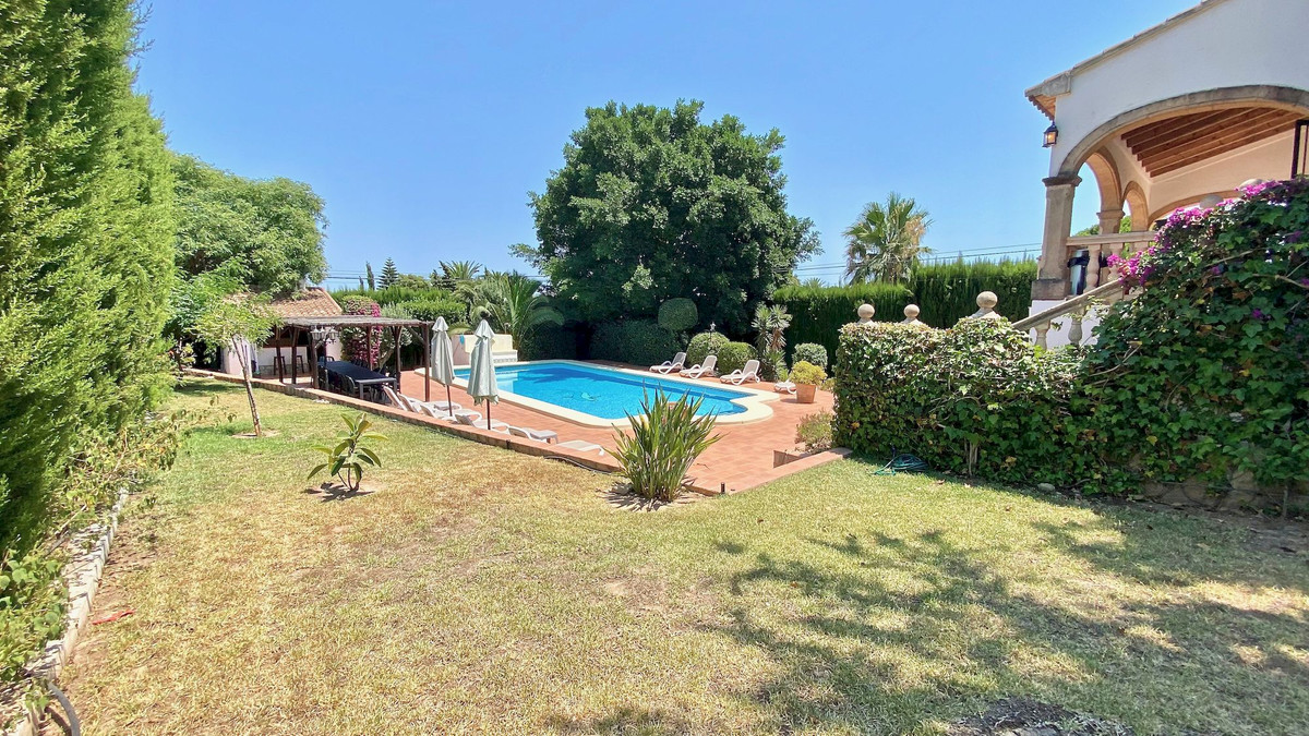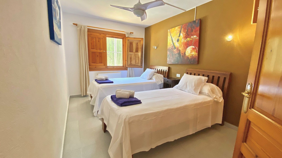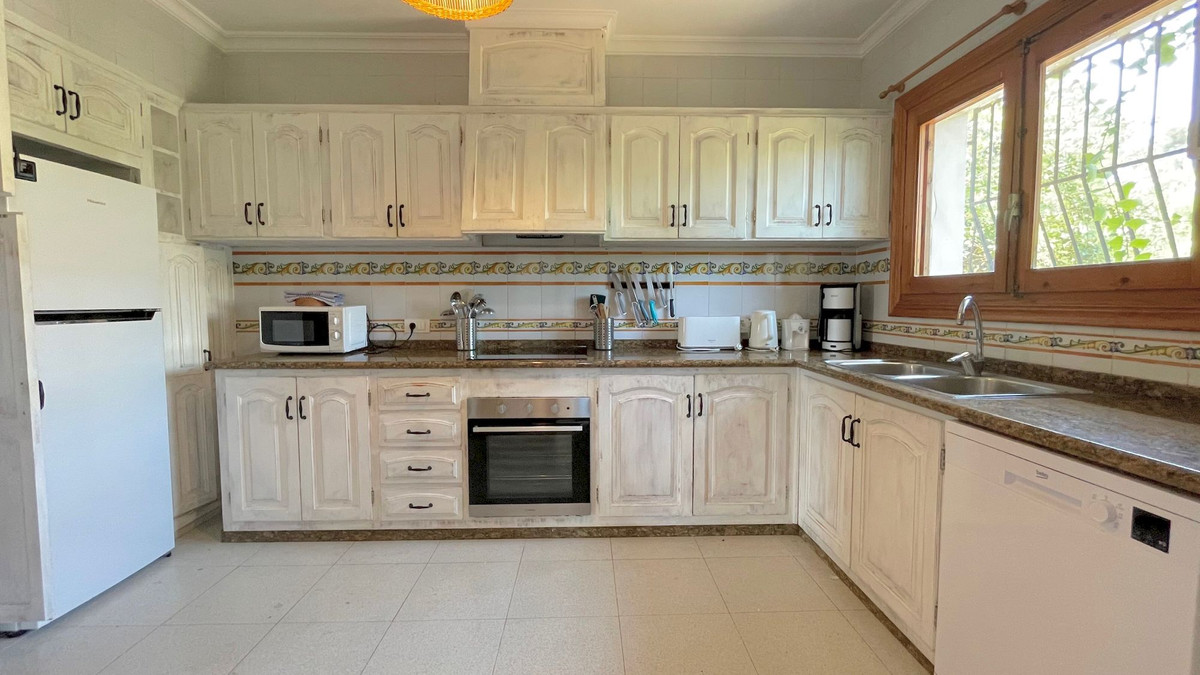 Classic villa for sale located a very short distance from the Arenal and all services. This magnificent property located on a flat plot, is distributed over 2 levels. On the ground floor we find four bedrooms with fitted wardrobes, two bathrooms and games room. On the upper floor there are three bedrooms with fitted wardrobes, two full bathrooms, large independent kitchen, dining room and cozy living room with fireplace and window door to the large terrace that overlooks the pool and with some sea views, summer kitchen by the pool with gazebo for many people, totally private garden with cypresses 3 meters high, garage, heating by gas panels throughout the house. Consult us for more information!