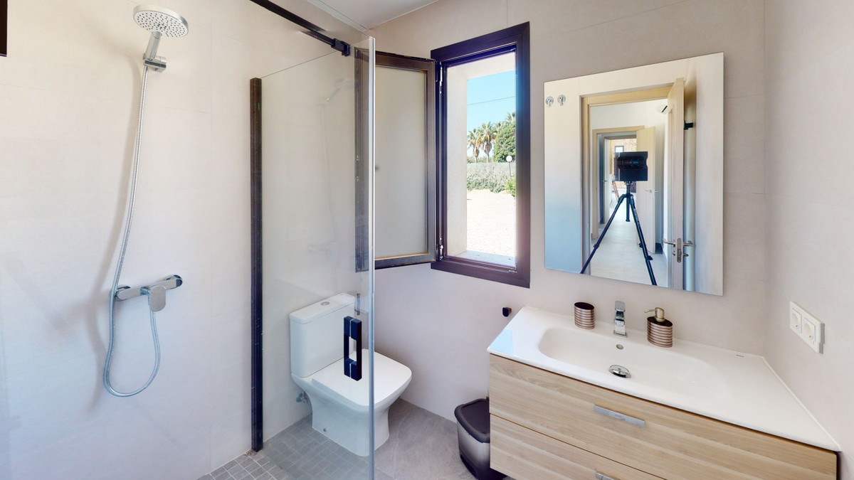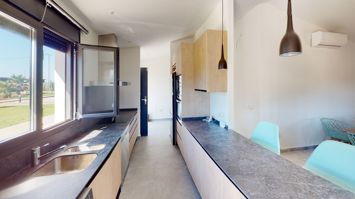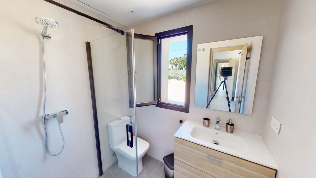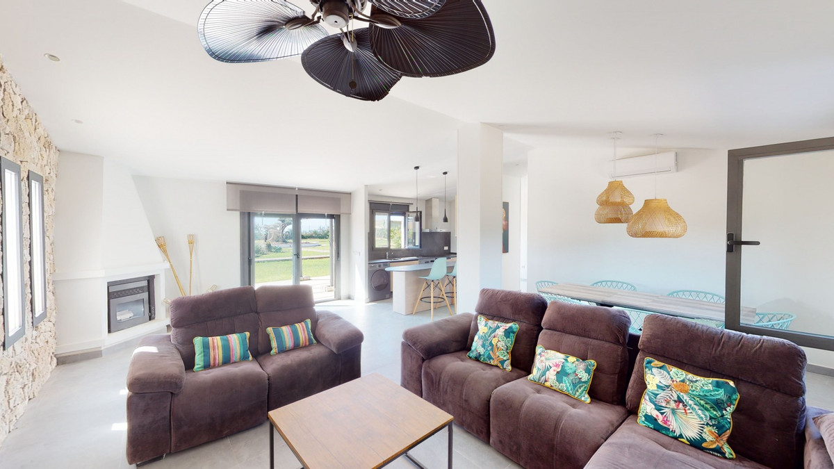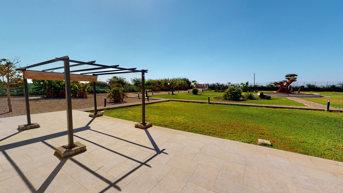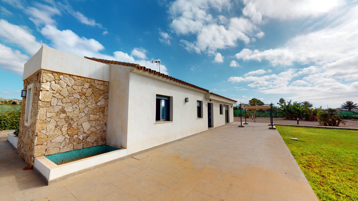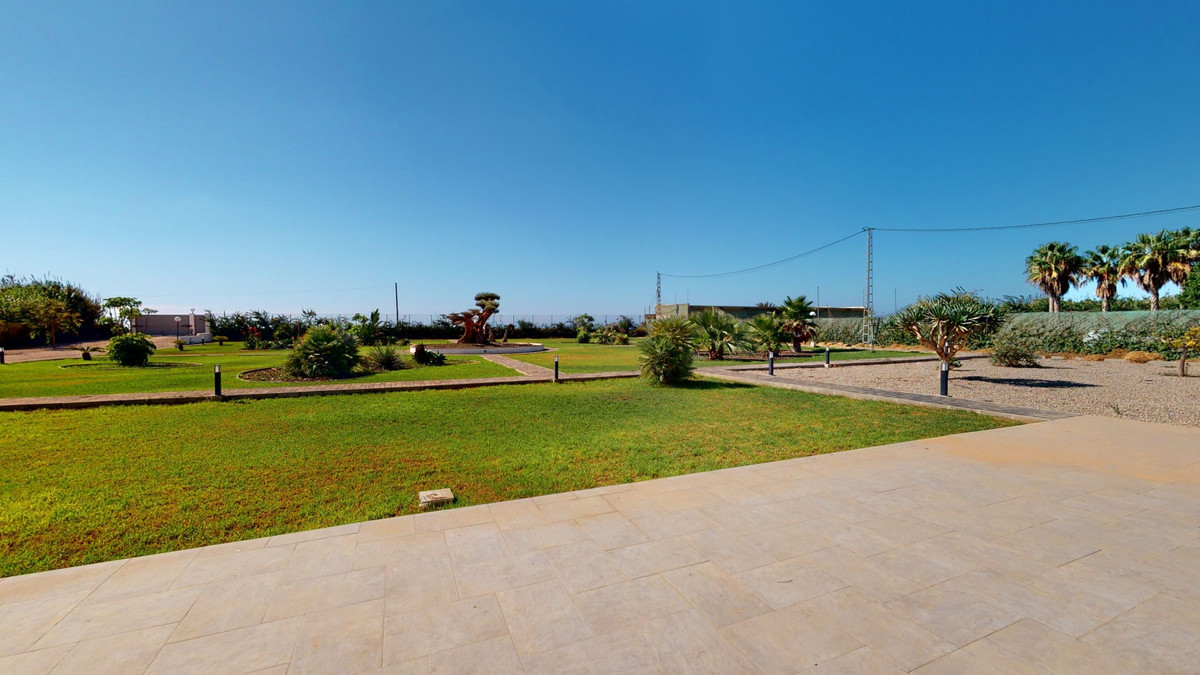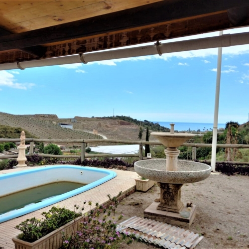 We present you this spectacular property in the first beach line in Almayate. The spacious 5000 m2 plot is fantastically landscaped, with paths leading through the grass and beautiful planting. Lamps light your way. This impressive garden is an absolute highlight and is not found at many villas.   On this property stands a charming, recently renovated chalet with a wonderful view of the garden and the sea. Upon entering the house, to the right is an open, fully equipped kitchen and a living and dining room with a fireplace and patio doors. A stone accent wall gives the room a rustic style break. This cozy room is a great place to spend the colder winter months, snuggled up on the sofa with the warmth of the fireplace.   A hallway leads to the bedrooms and bathrooms. The master bedroom overlooks the garden and the sea and has an en suite bathroom. The other two bedrooms share a separate bathroom. In addition, there is another room that can be used as a dressing room and storage room.   Outside there is a terrace with a pergola and an outdoor kitchen. Here you could put a barbecue and build a wonderful lounge area. Imagine it is a warm summer evening, the whole family is with you and you spend wonderful hours on your lounge area under the stars.   The property offers air-conditioning, double-glazed windows and a storage room.   The driveway has an automatic gate and an entrance door. On the spacious gravel driveway, you can park several cars.   We are pleased to be able to present this dream property to you soon, either personally or via virtual viewing. Because this world, it is unique - just like our Axarquía. In Andalusia. On the Costa del Sol. Here, on the sunny side of life...