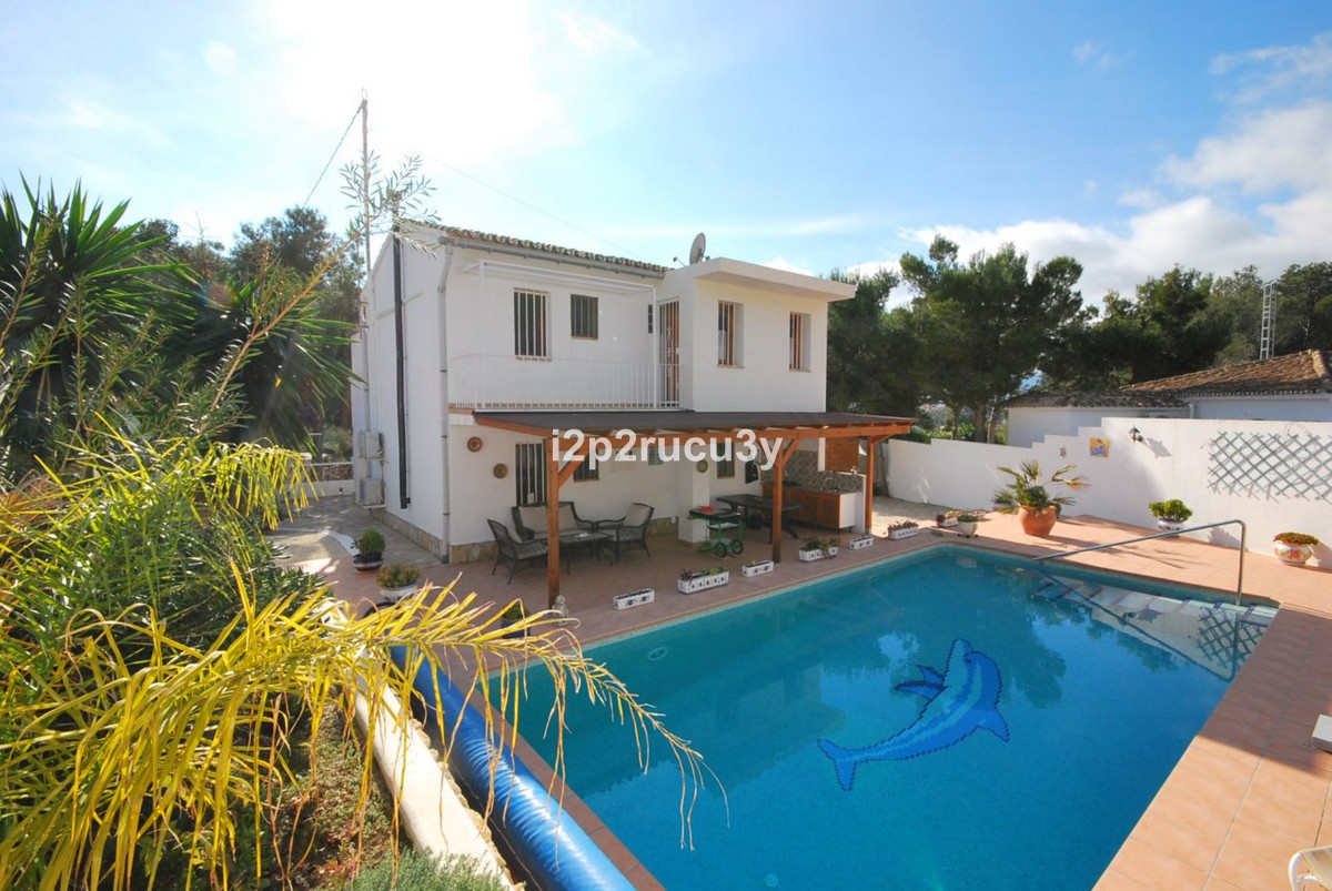 Two villas situated on 1 plot, located in La Fustera, Benissa close to the beach. Ideal for rental purposes!Distribution Villa 1 (111m2) : living/ dining room, kitchen, 3 bedrooms, 1 bathroom, guest toilet, stairs with chairlift. Garden, 8x4m heated salt water pool, outside shower, carport, wooden shed and manual gate. Distribution of the 2nd villa (83m2): living/ dining room, open plan kitchen, naya, 2 bedrooms, 1 bathroom, terraces with views to the garden. Gas central heating.