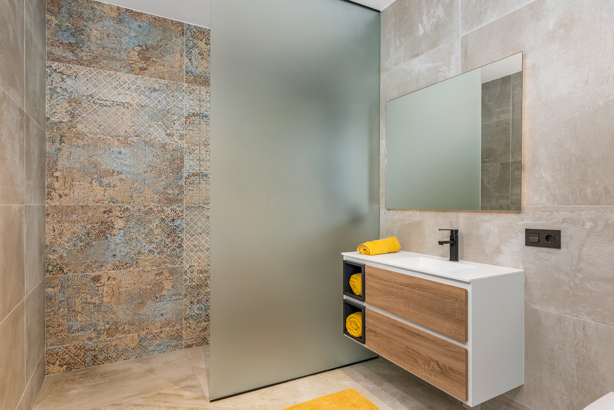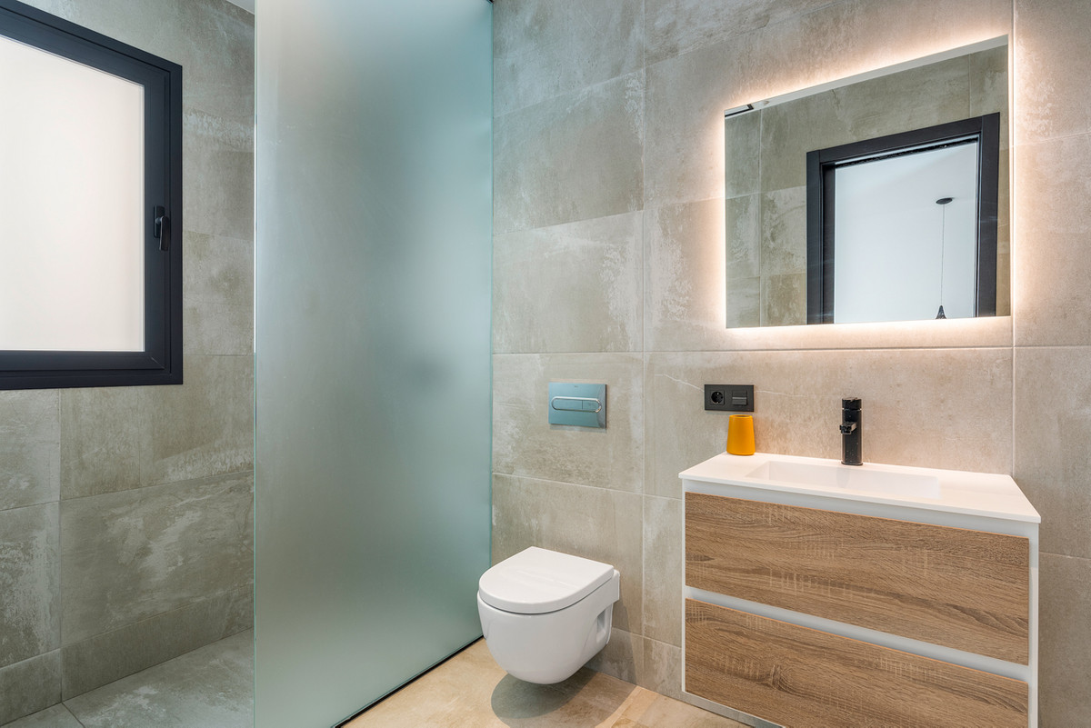 Outdoor areaThe villa is set on a lovely corner plot of 462 m2. The pool area is east facing, giving you amazing views over the surrounding area and to the sea. Around the pool you have a beautiful tiled area with space for several outdoor seating areas and sun beds. From the pool area you have external stairs leading you to the large roof terrace. Here you have one part that is tiled and the other part with artificial grass, both of them with a lot of space for outdoor entertainment and with amazing views. At the entrance to the house you have another lovely tiled garden area that faces west. This area is perfect to enjoy the afternoon / evening sun. At the lower level you can find a large tiled patio with an artificial vertical garden. This patio can be access from the garden through external stairs, and also from the living room and 2 of the bedrooms in the lower level.