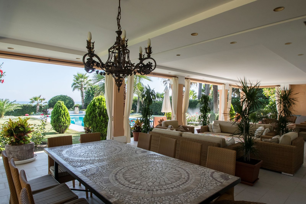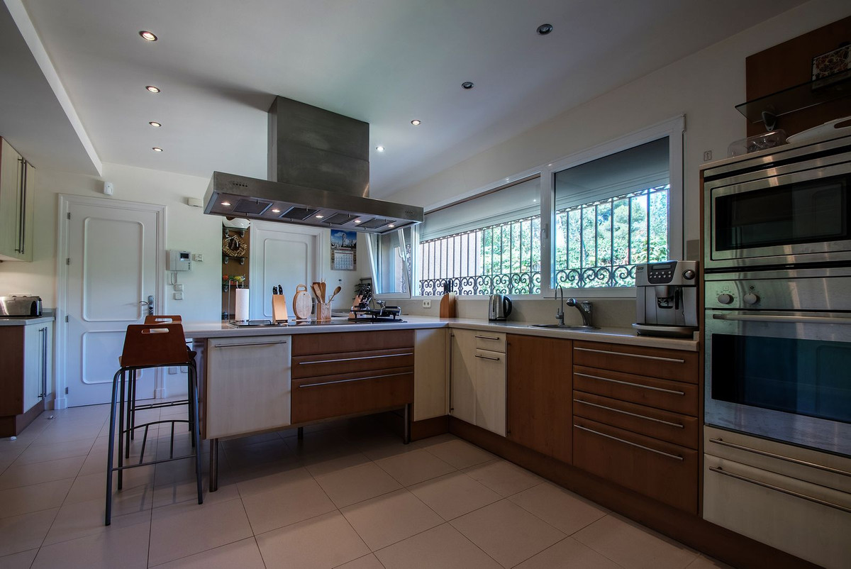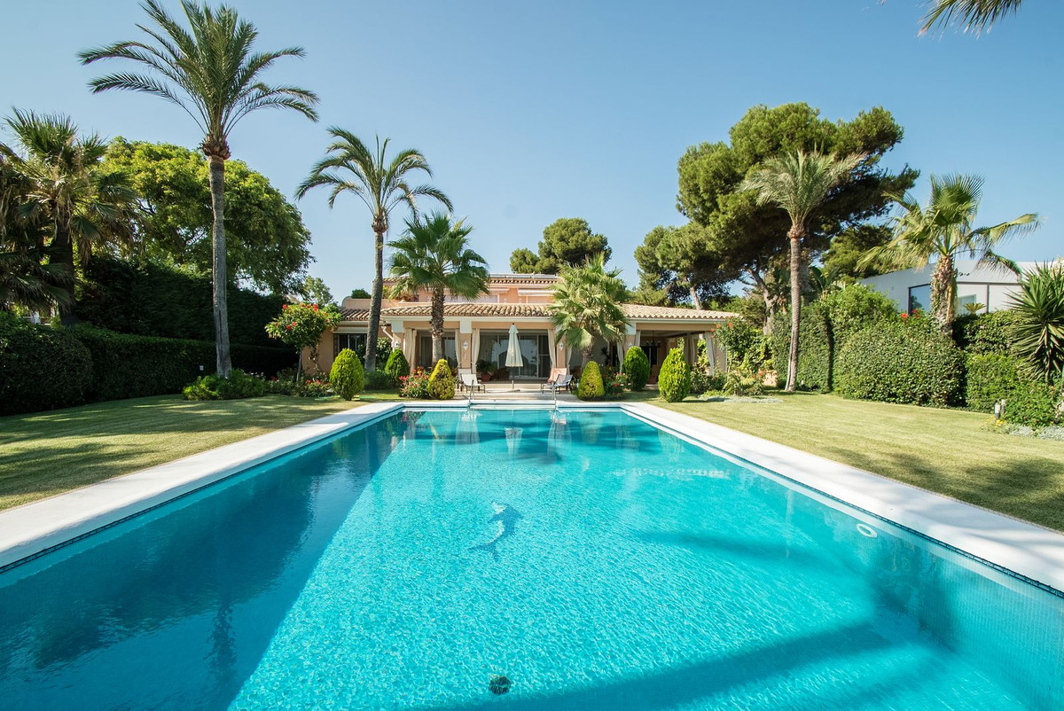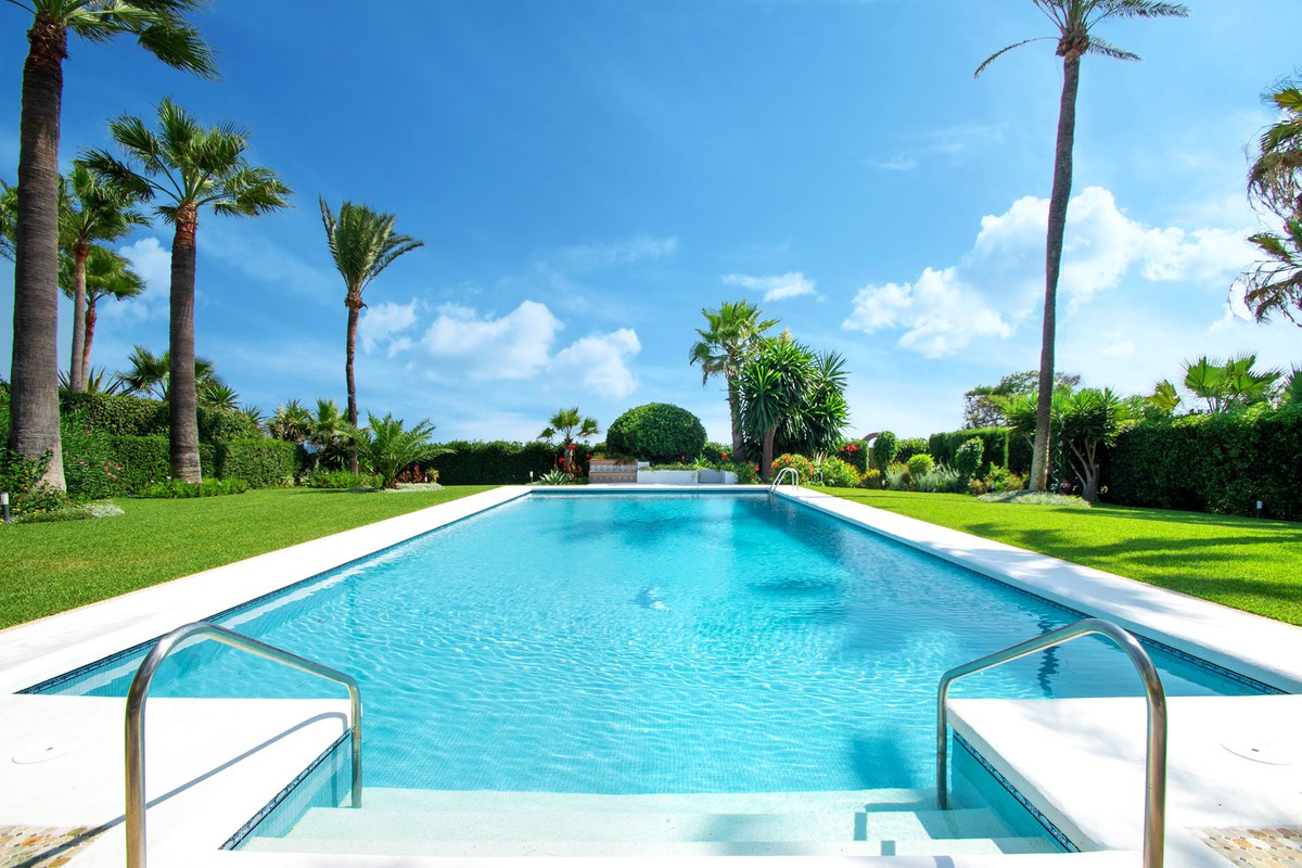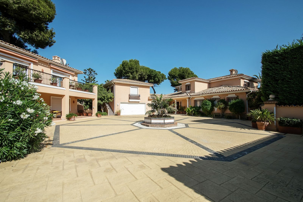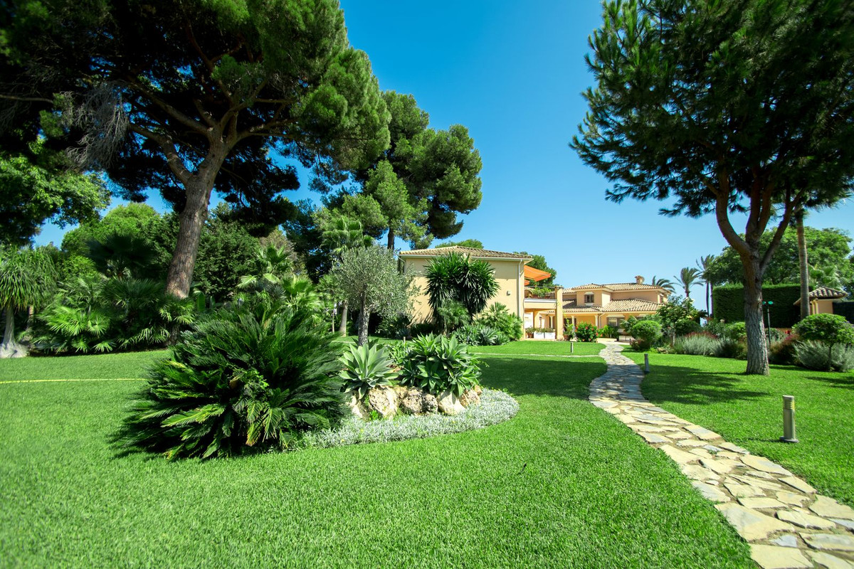 Spacious, flat plot with direct access to the sea (private gate), quiet, green area. On a plot of 2 residential 2-storey houses (the main house is 6 bedrooms, a large apartment for the servants, a garage for 2 cars, a kitchen, a dining room, a hall, 2 terraces + a guest toilet) and a small house (2 bedrooms, 2 bathrooms, laundry room, pantry, large hall and open kitchen), excellent condition, all modern bathtubs in both houses are all condo and floor heating in all bathrooms and there is also a fireplace in the main house, as well as 1 building separately with a garage for 4 places, a kitchen and a barbecue, there is also a playground . There is a pond on site and a large pool. From the main bedroom (about 30 meters) on the second floor there is a direct view of the sea. From the additional bedroom on the same floor is also the same view. They have a common large terrace. All houses are fully furnished, the garden is well-groomed, there are orange and lemon trees, palm trees and so on. A security system with video cameras along the internal and external perimeters has been installed. All houses are bright and spacious, all bedrooms are of good size, all with their own bathrooms in all houses.
